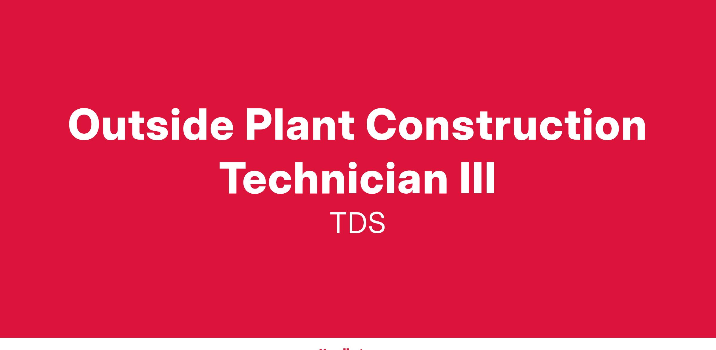 This position can be hired at either a Outside Plant Construction Technician II (requisition ID #2025-24335), or an Outside Plant Construction Technician III (requisition ID #2025-24342) level, depending on the skills and qualifications of the candidate. Different job postings exist for each of these positions. Please reference each job posting for the minimum qualifications required for each role and submit an application for each level that you are both interested and qualified for.