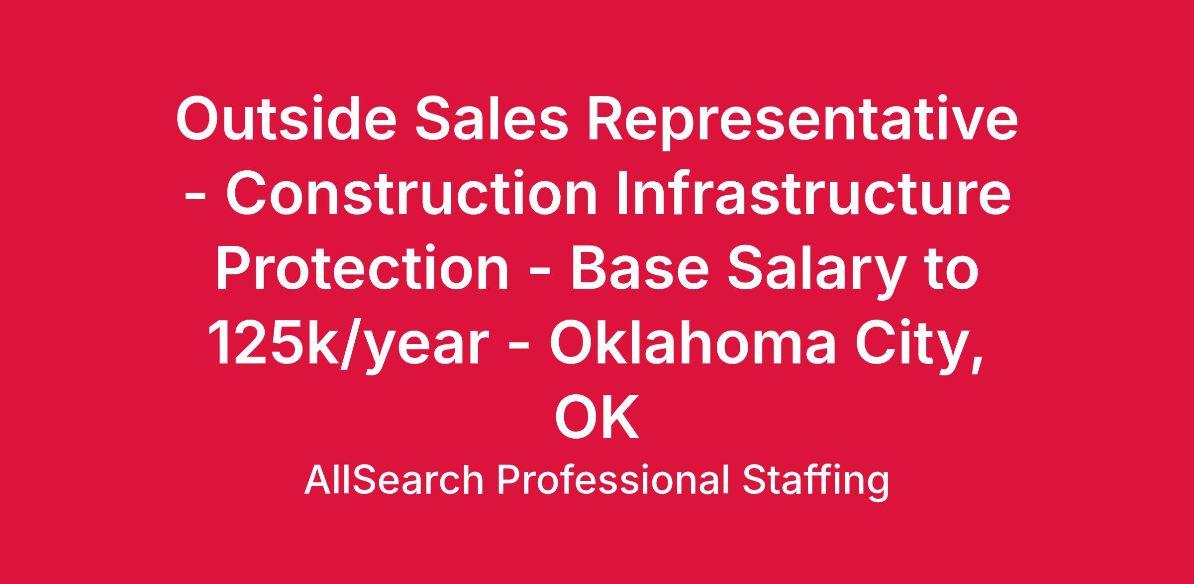 Outside Sales Representative - Construction Infrastructure Protection - Base Salary to 125k/year - Oklahoma City, OK