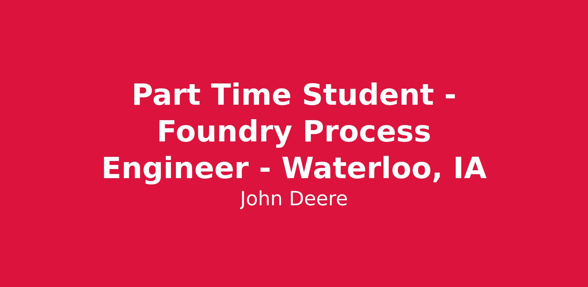 Title: Part Time Student - Foundry Process Engineer - Waterloo, IA - 119062