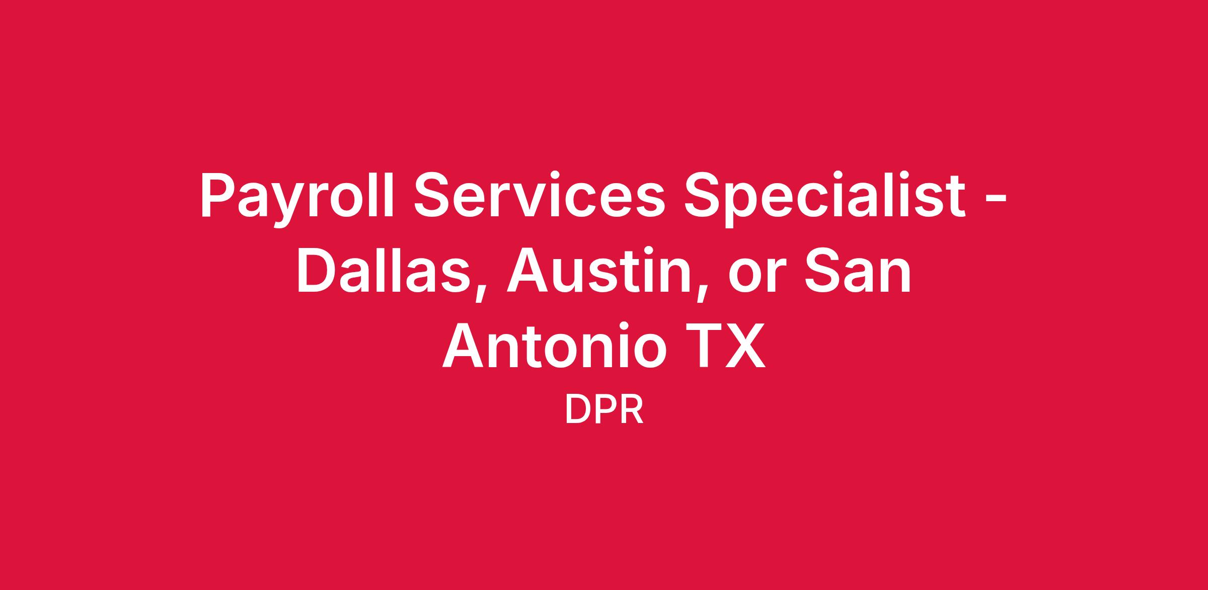 Payroll Services Specialist - Dallas, Austin, or San Antonio TX
