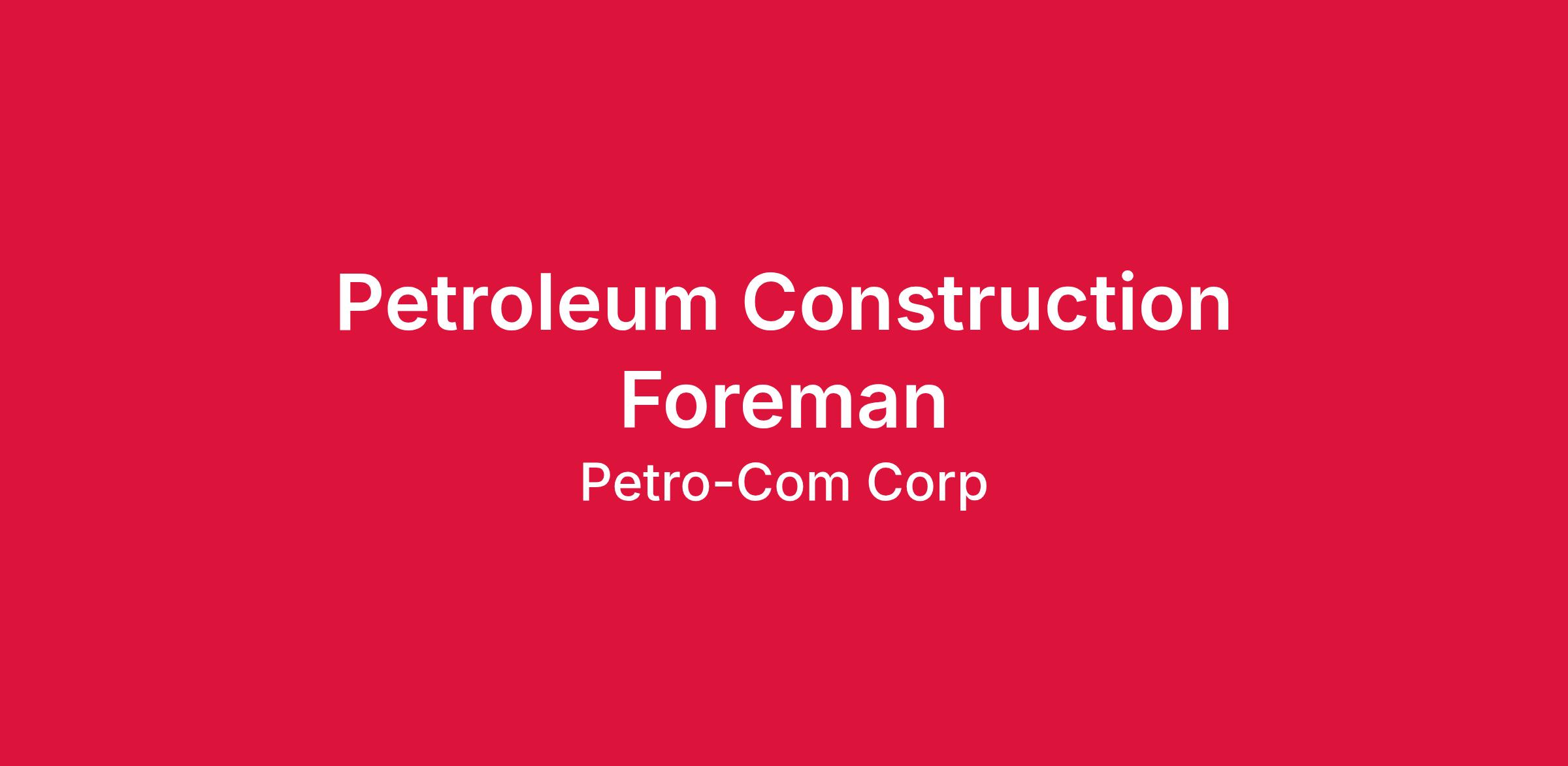 Petro-Com Corporation is looking for a Construction Foreman to provide excellent customer service in the installation, service, repair, and maintenance of all petroleum equipment. Our ideal candidate will be someone looking for a long-term opportunity, and the chance to grow within the organization. Starting wage for candidates with petroleum construction experience will be based on experience, certifications, and/or accreditations.