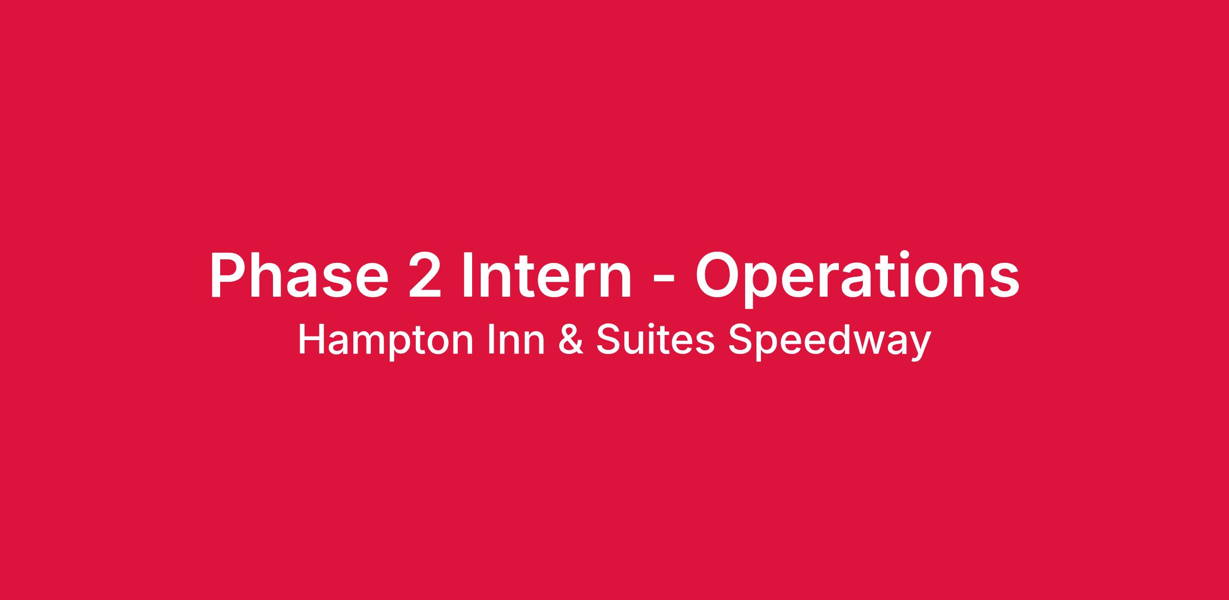 As a Phase II intern you will get the opportunity to gain in-depth knowledge and first-hand practical experience in all aspects of a hotel. This position focuses more on having hands-on responsibilities of recruiting, training, supervising, and supporting of staff, student interns, and team leaders. The internship includes job rotations in Housekeeping, Front Desk, Maintenance, Sales and Operations Leadership.