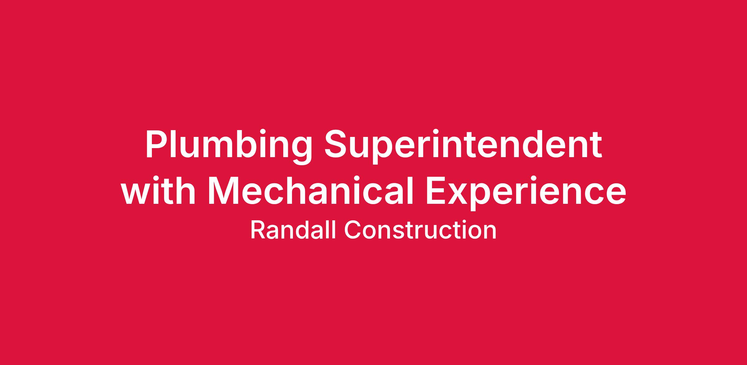 Randallâs Plumbing Superintendent will oversee multiple crews and implement the installation of various sized plumbing systems, ensuring they align with mechanical systems and comply with all safety and code standards. You will manage work sequencing, interpret blueprints and plumbing code, and ensure safe and timely completion of all projects.