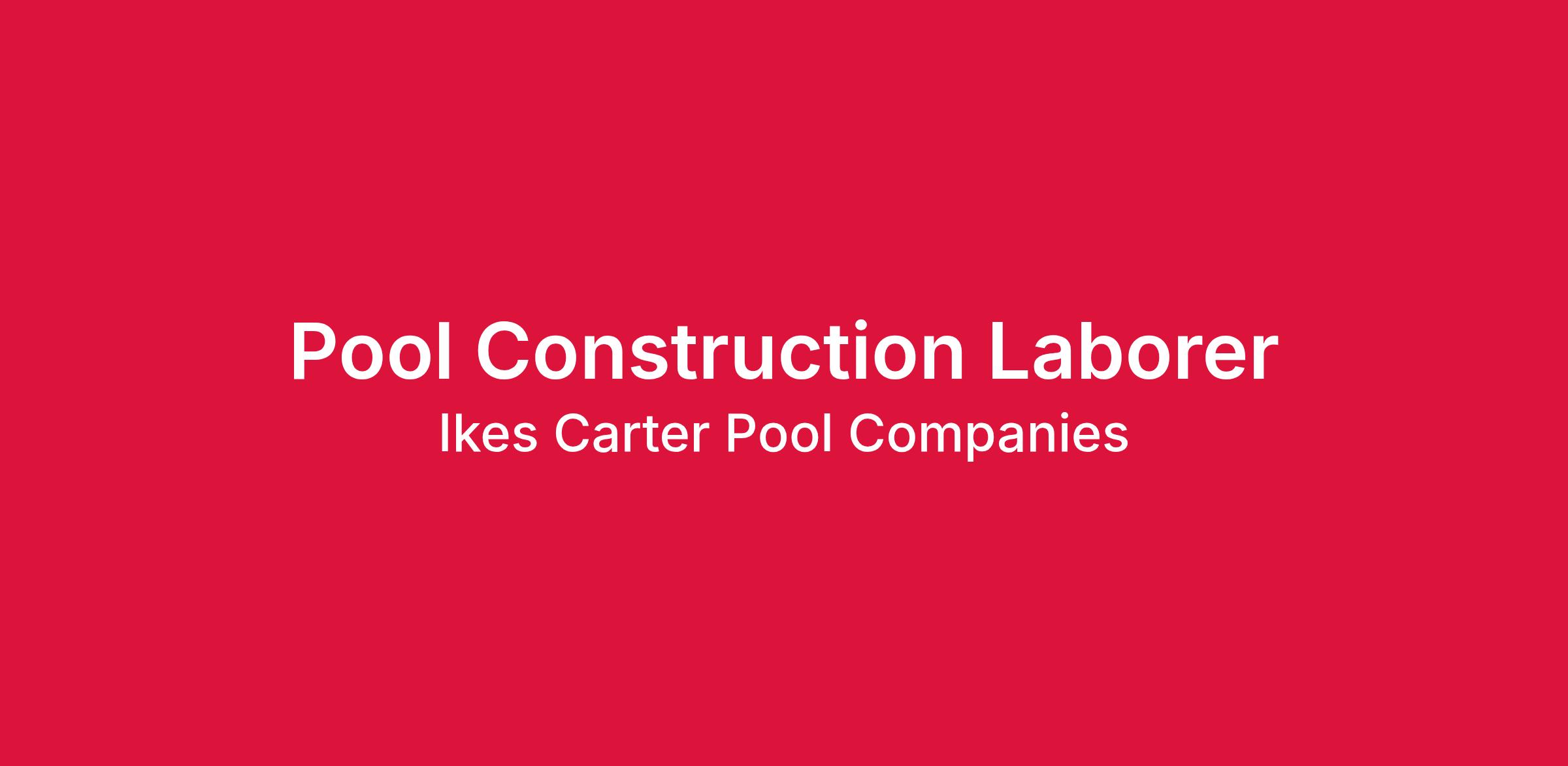 Ike’s Carter Pools is seeking a dedicated and skilled Pool Construction Laborer to join our team. As a key member of our crew, you will play an essential role in building beautiful swimming pools for our valued clients.