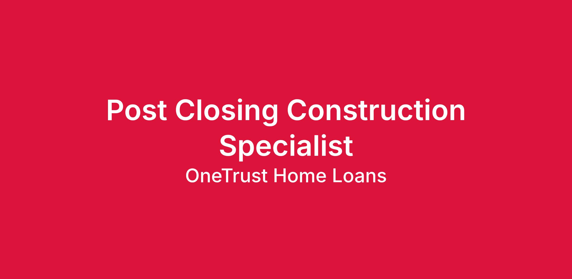 The Post-Closing Construction Specialist supports the construction lending team by managing loans as they move from the construction phase to permanent financing. This role works closely with borrowers, internal teams, and settlement partners to ensure all documentation, disbursements, and qualification requirements are completed accurately and on time. The position plays a key role in monitoring construction timelines, assisting with loan extensions when needed, and helping maintain an efficient and compliant construction pipeline.