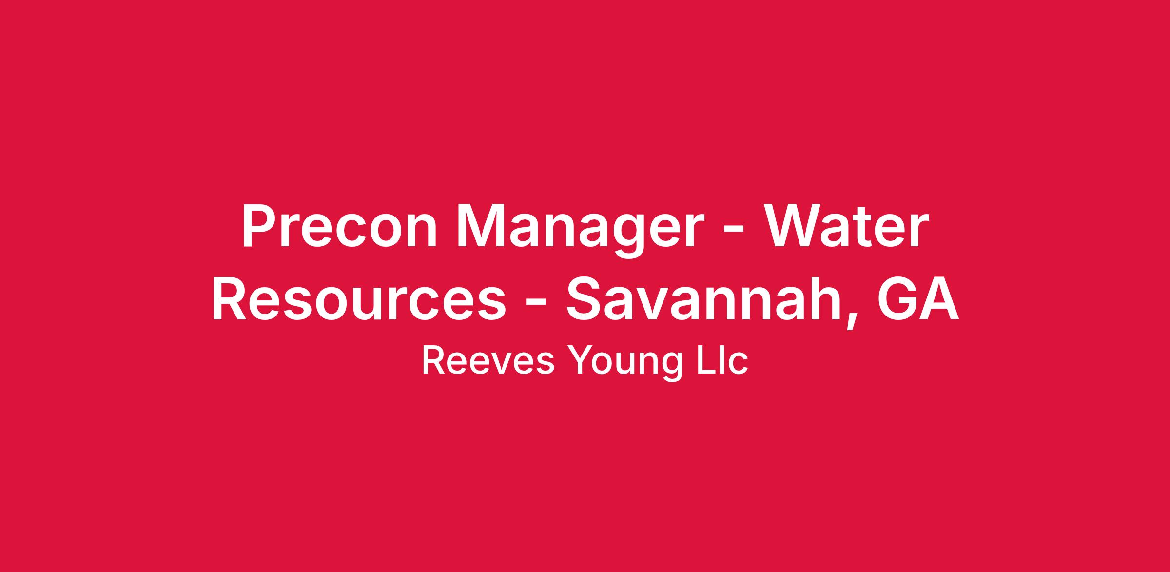 Precon Manager - Water Resources - Savannah, GA