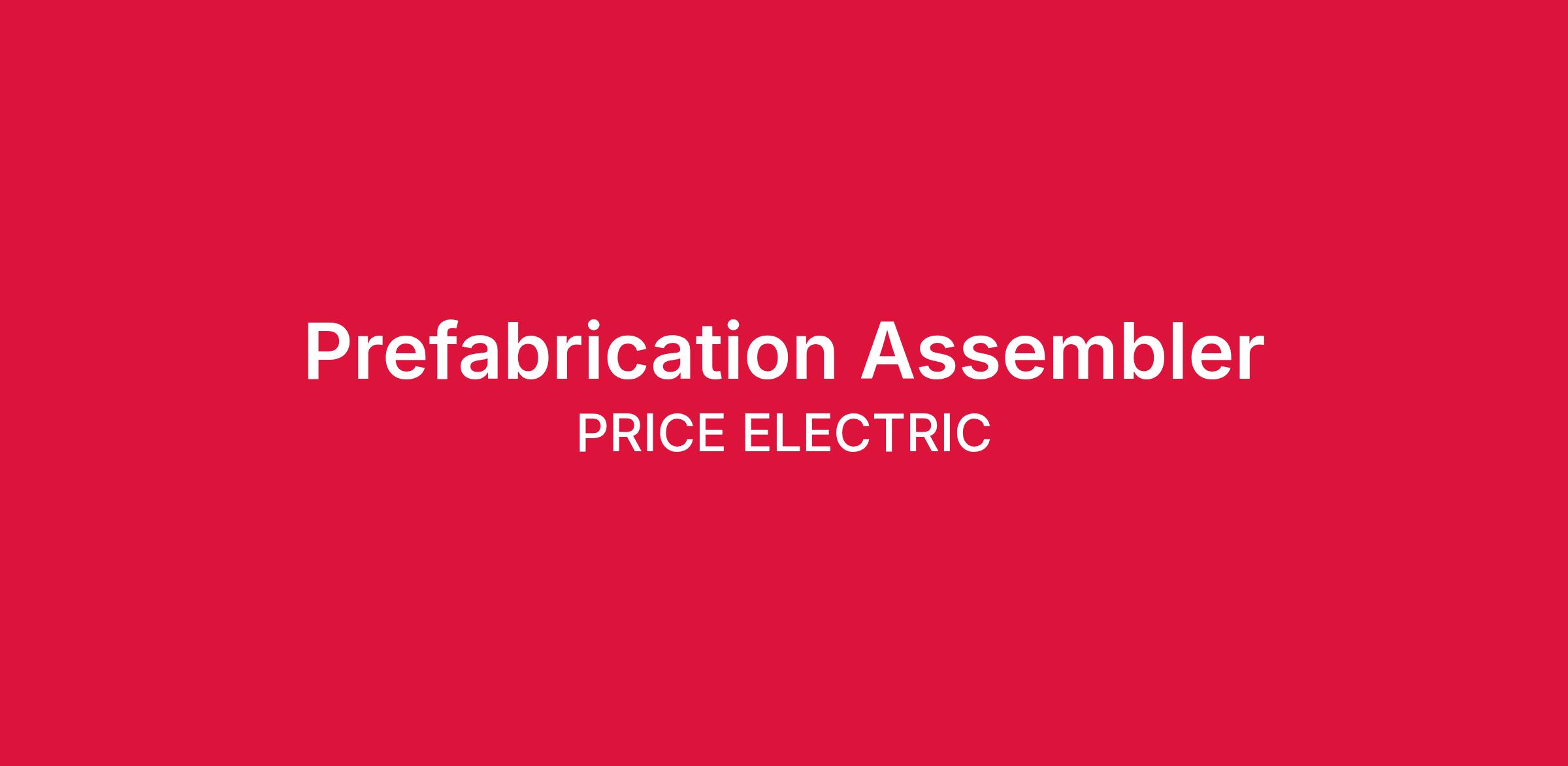 PRICE ELECTRIC is hiring in-shop Assemblers to meet its growing demand for quality prefabricated construction. Whether you enjoy assembling items with tools, are interested in becoming qualified to operate various equipment, or want to get your career started with a top local electrical contractor, we encourage you to apply today!