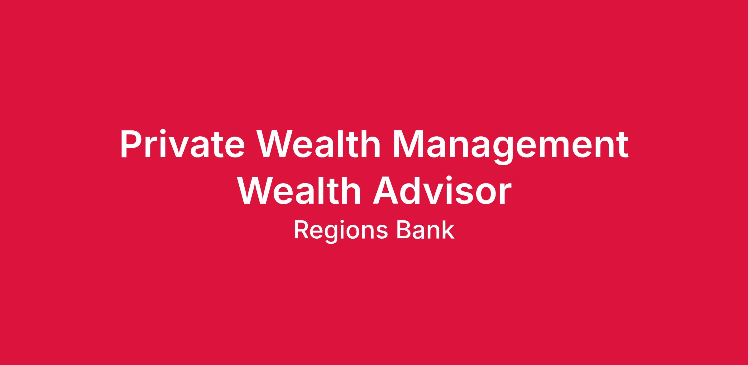 At Regions, the Private Wealth Management Advisor develops and maintains a portfolio of client relationships within the defined affluent and high net worth market segments utilizing unbiased, consultative advisory approaches and sound personal financial planning and financial advisory concepts.