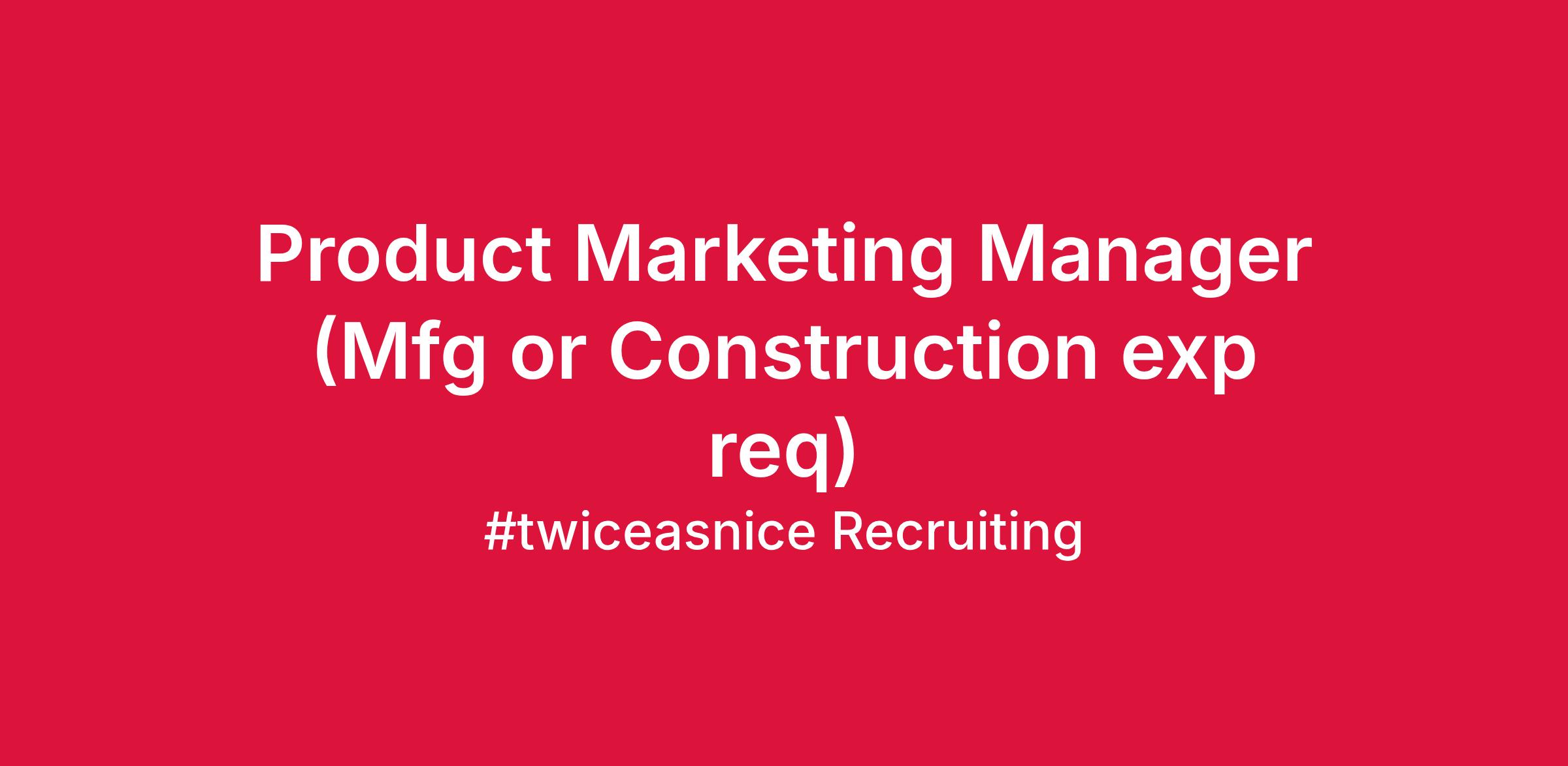 Product Marketing Manager (Mfg or Construction exp req) Description