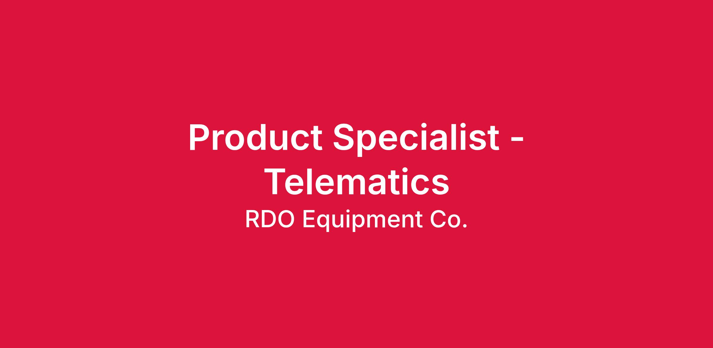This individual will drive RDO Equipment Co.’s Connected Support initiatives by building relationships and serving as the primary resource for Telematics connected machines and machine technology, with a focus on the telematics support and training. This individual will work with both internal and external customers to build value and acceptance of the integration of technology into our machines and the solutions they can provide.