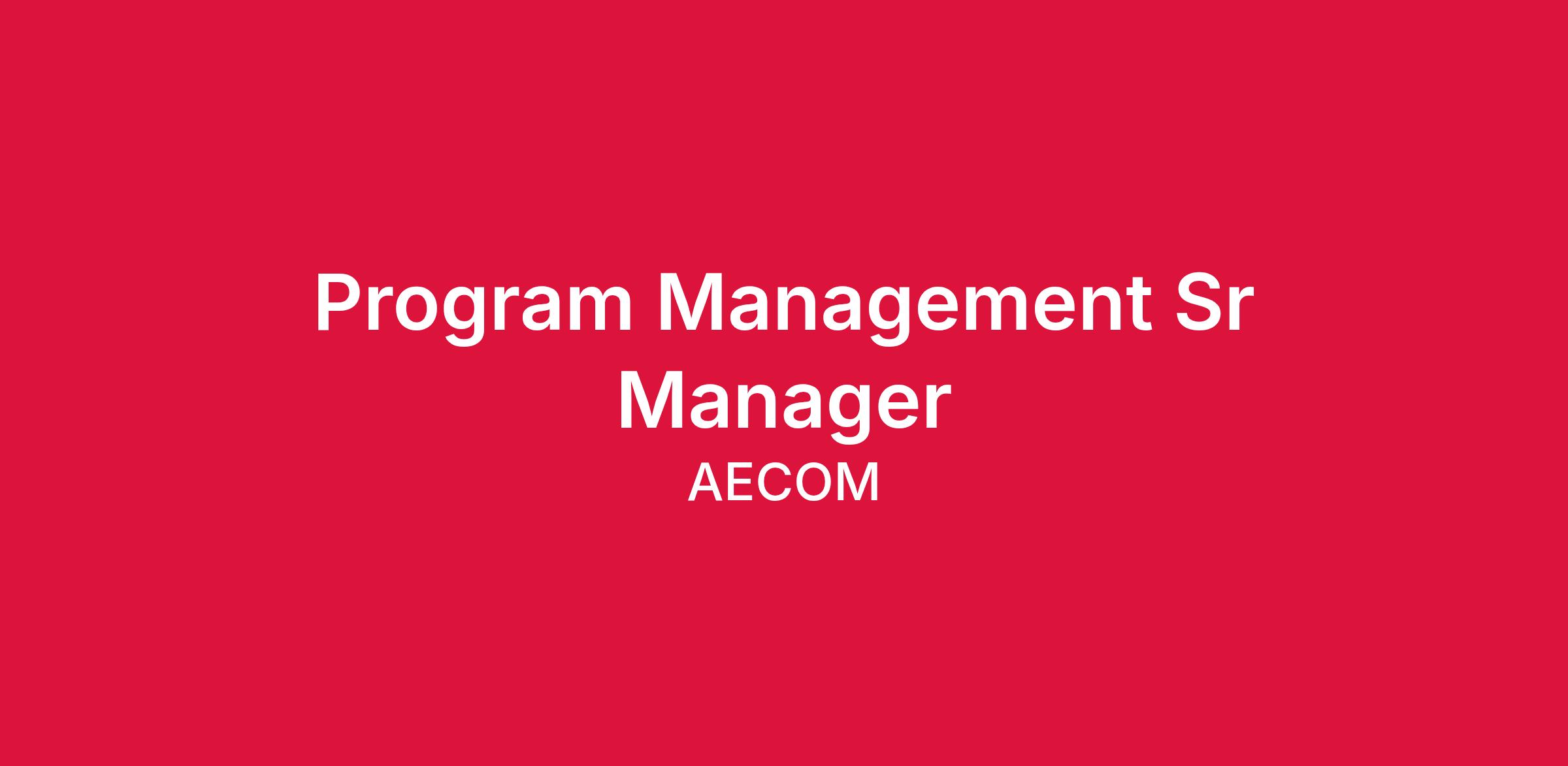 AECOM is seeking a Program Management Sr Manager to lead a program based in Dallas, TX.