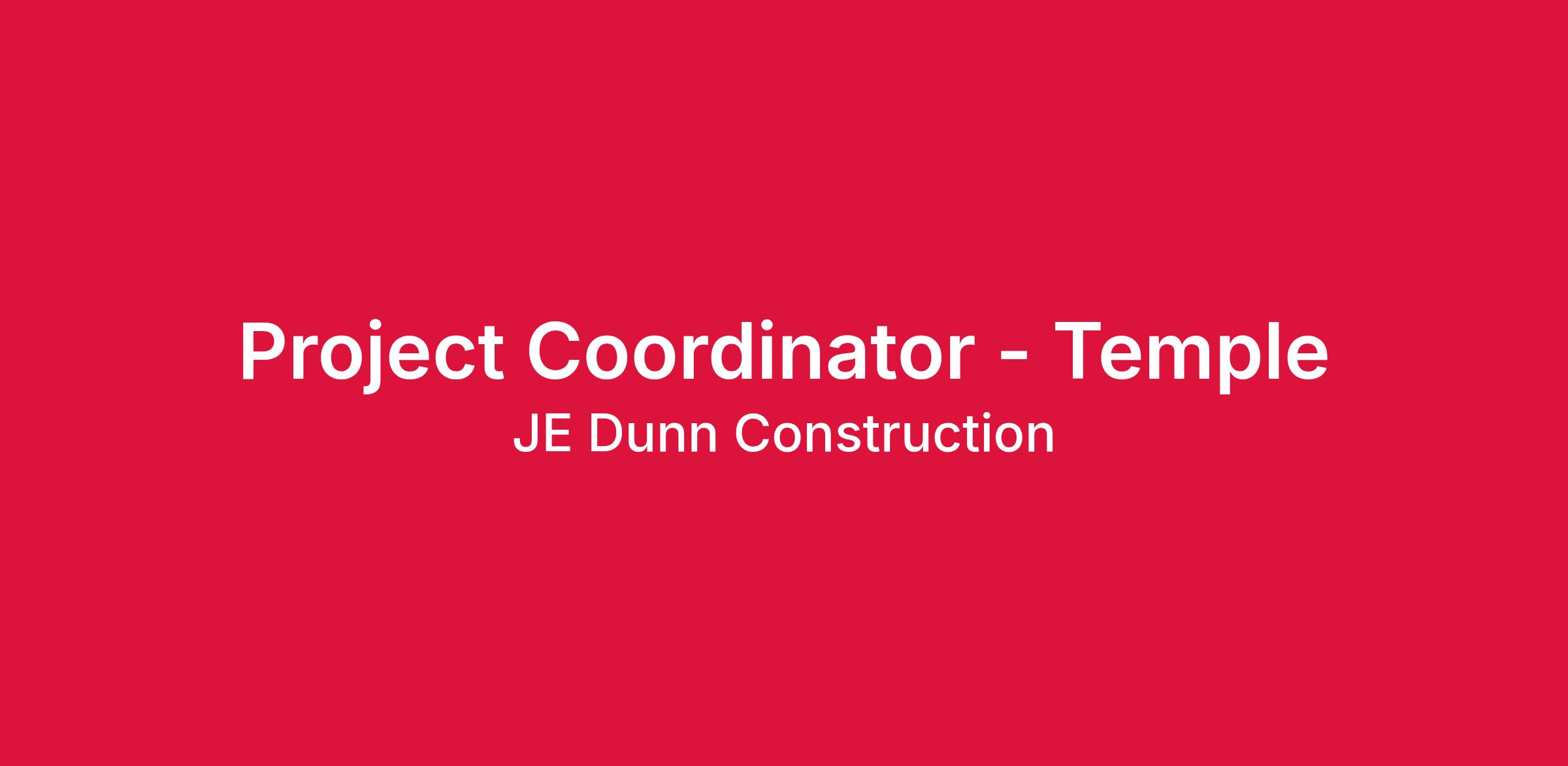 The Project Coordinator will provide routine administrative support to internal and external project management team members. This position will collect, process, input, organize and file data and documentation from various sources and stakeholders in order to support the administrative, documentation, data, reporting, compliance and communications needs of projects. All activities will be performed in support of the strategy, vision and values of JE Dunn.
