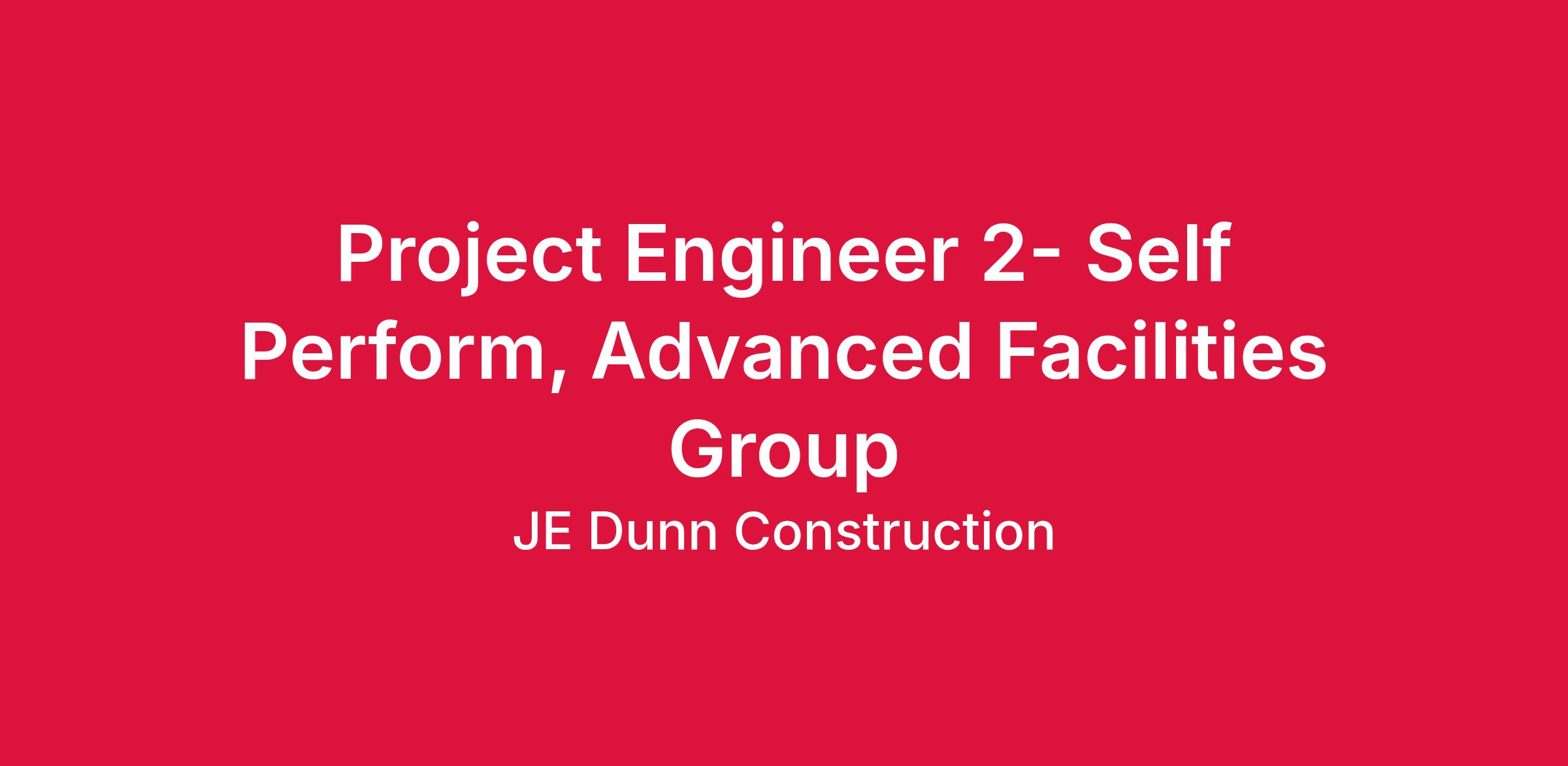 The Project Engineer will complete and support routine construction and field execution responsibilities for construction projects utilizing construction fundamentals and company best practice standards, processes, resources and tools. This position will be responsible for participating in many facets of the construction process, such as general construction management, punch lists and executing self-perform work, in order to understand the building process and how JE Dunn executes projects. All activities will be performed in support of the strategy, vision and values of JE Dunn.