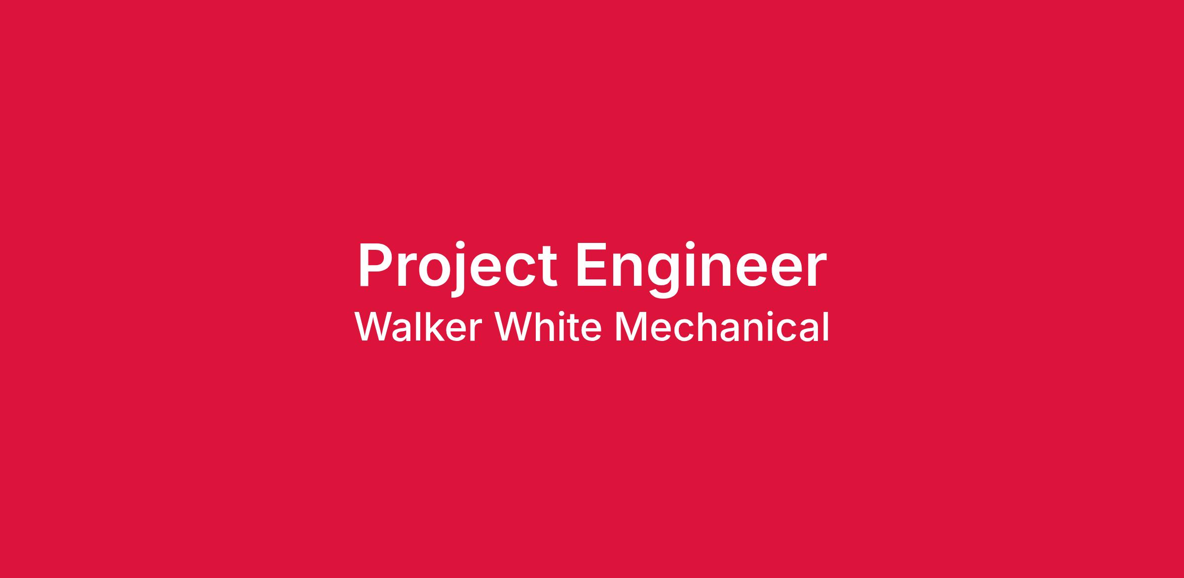 Walker White Mechanical is seeking a driven Project Engineer who’s ready to gain hands-on field experience, learn from seasoned professionals, and grow into a Project Manager role within 2–3 years.