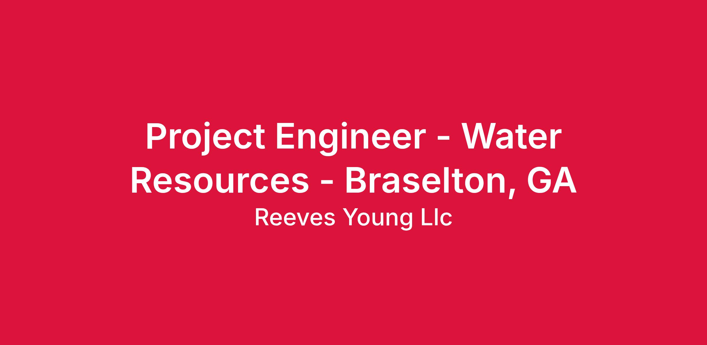 Project Engineer - Water Resources - Braselton, GA