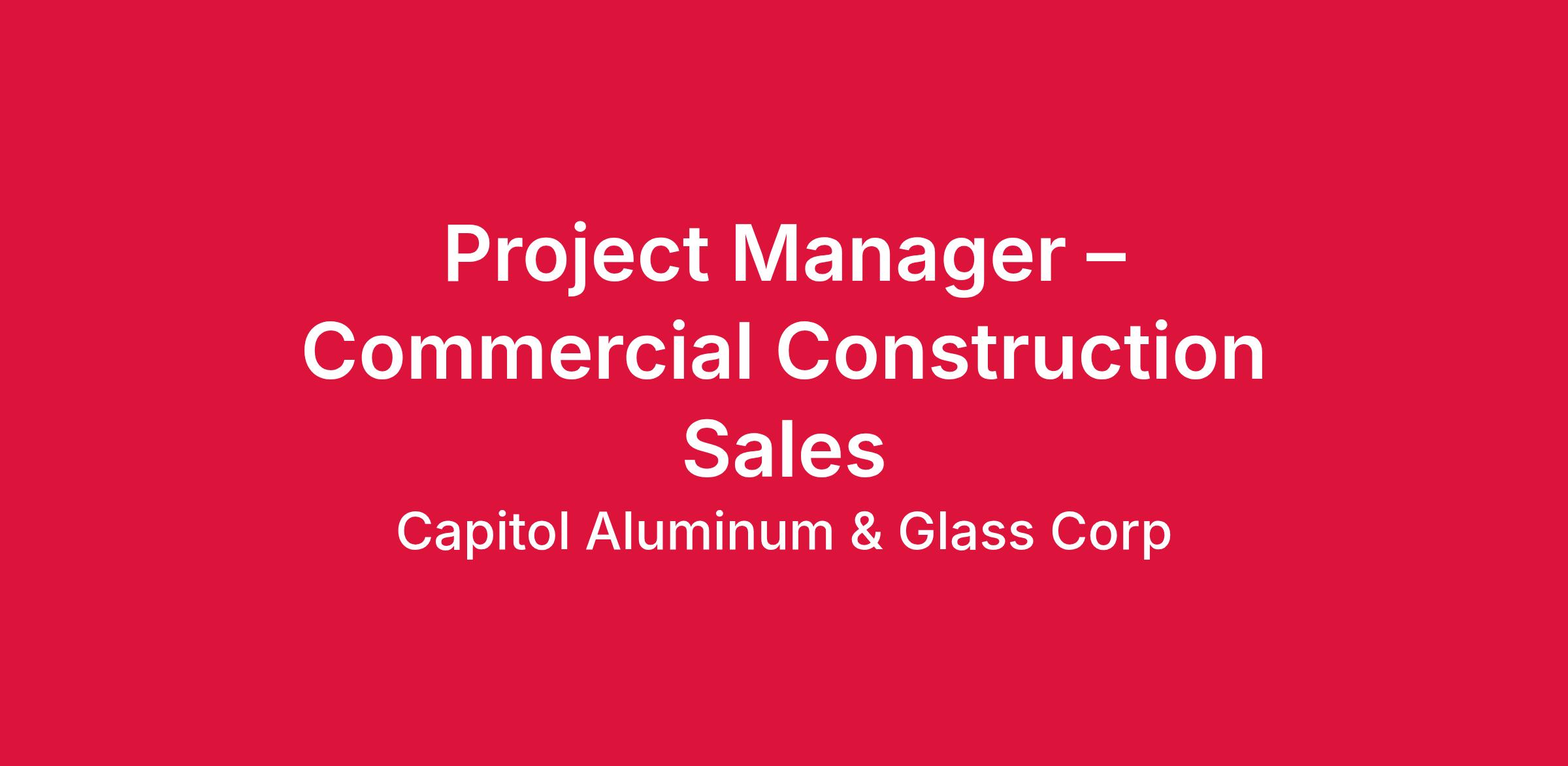 Capitol Aluminum & Glass Corp’s opening for a field-sales role involves traveling for customer consultations and site visits, while remaining a fully office-based position. The successful candidate will handle a territory, build deep industry relationships, and deliver creative solutions for projects. Office time will be required at our home location in Bellevue, OH for sales meetings, training sessions, and project documentation and quote development. The ideal candidate must have problem solving abilities, confidence to thrive in a fast-paced construction environment, and high ambition levels with great people skills.