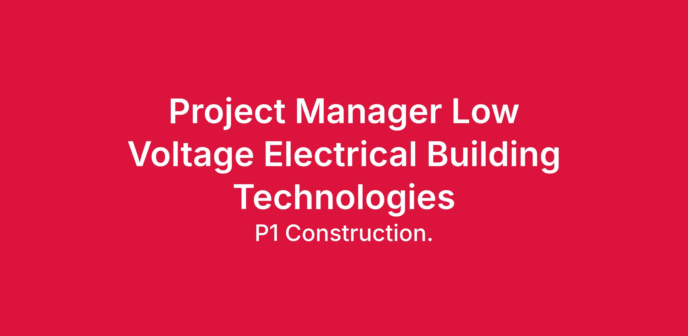 P1 Construction, LLC. is seeking a Low Voltage Electrical Building Technologies Project Manager based in our Lenexa KS office.