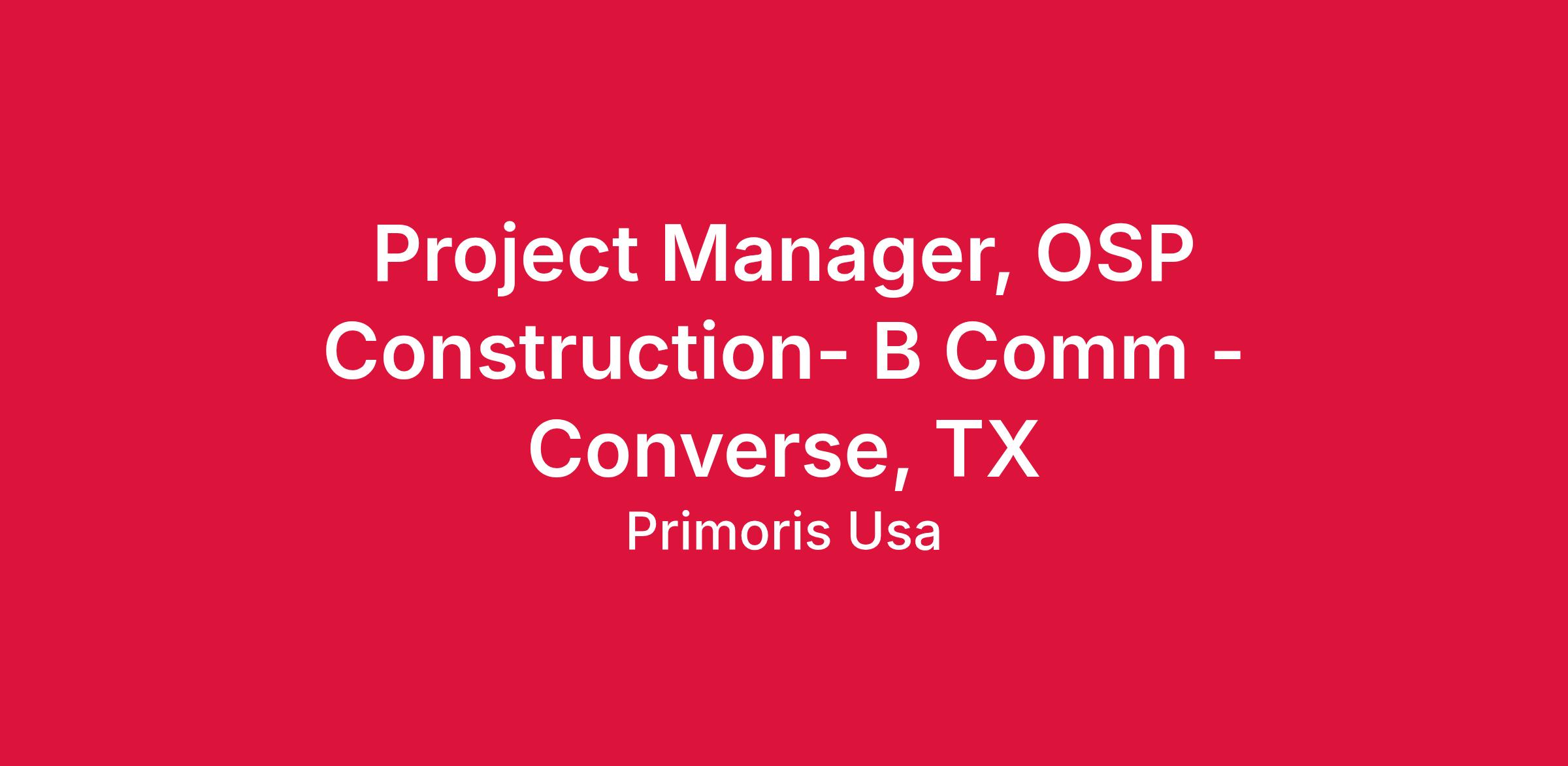 B Comm Constructors LLC provides quality telecommunication solutions from the design phase to completion and beyond. Our focus is to surpass customers' expectations by making vivid and complex visions realizations. We are looking for our next Project Manager, OSP Construction.