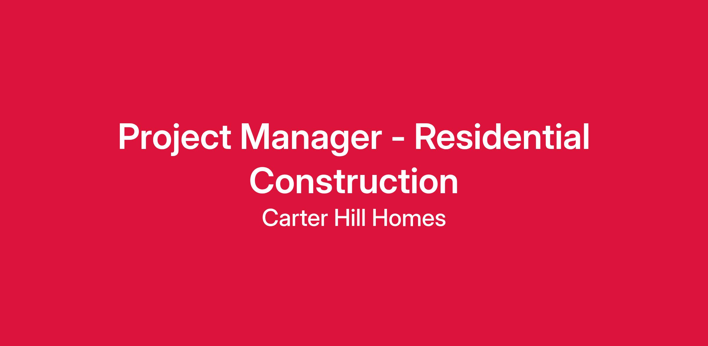 Job Title: Project Manager – Residential Construction Company: Carter Hill Homes, LLC