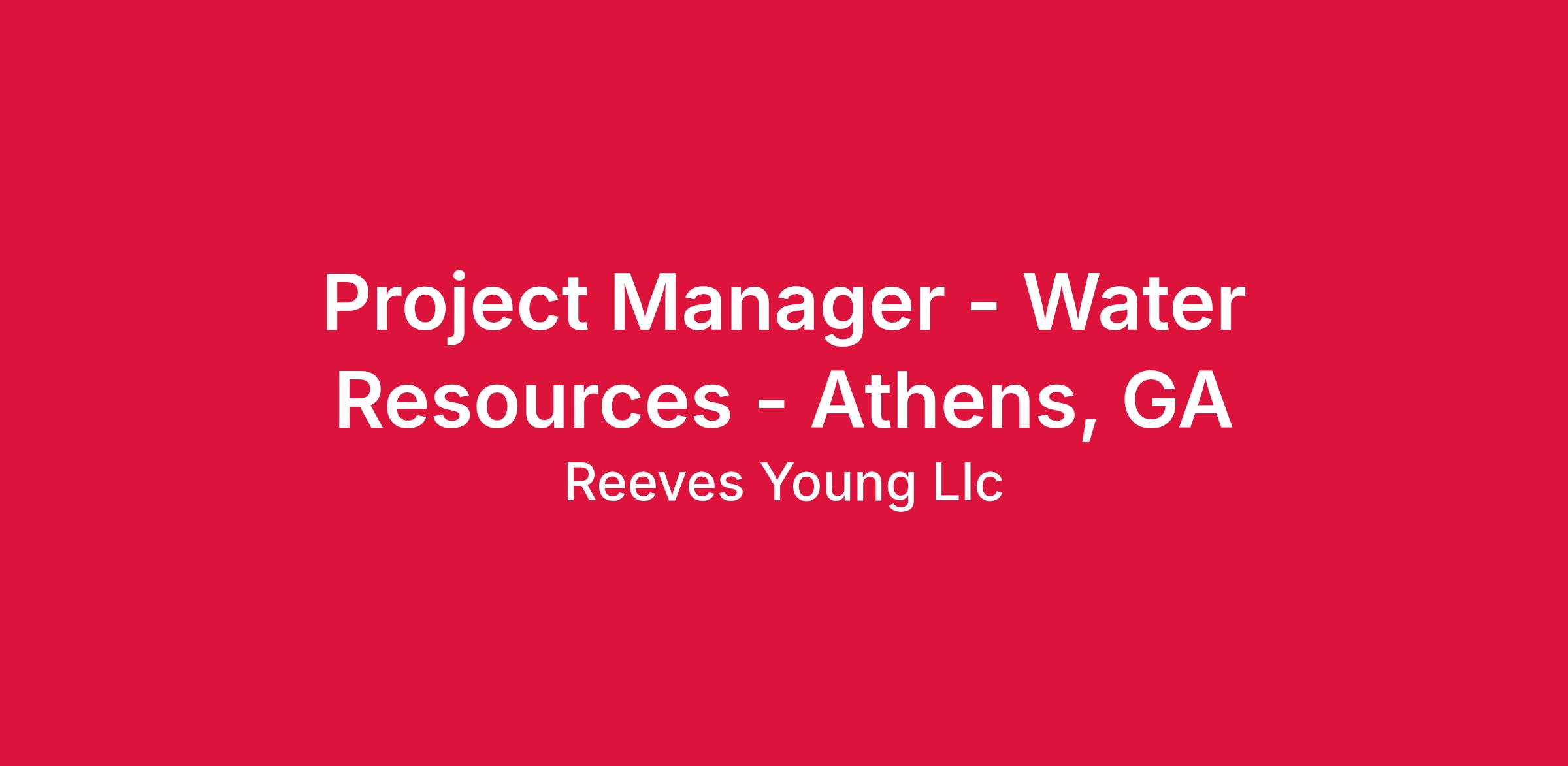 Project Manager - Water Resources - Athens, GA