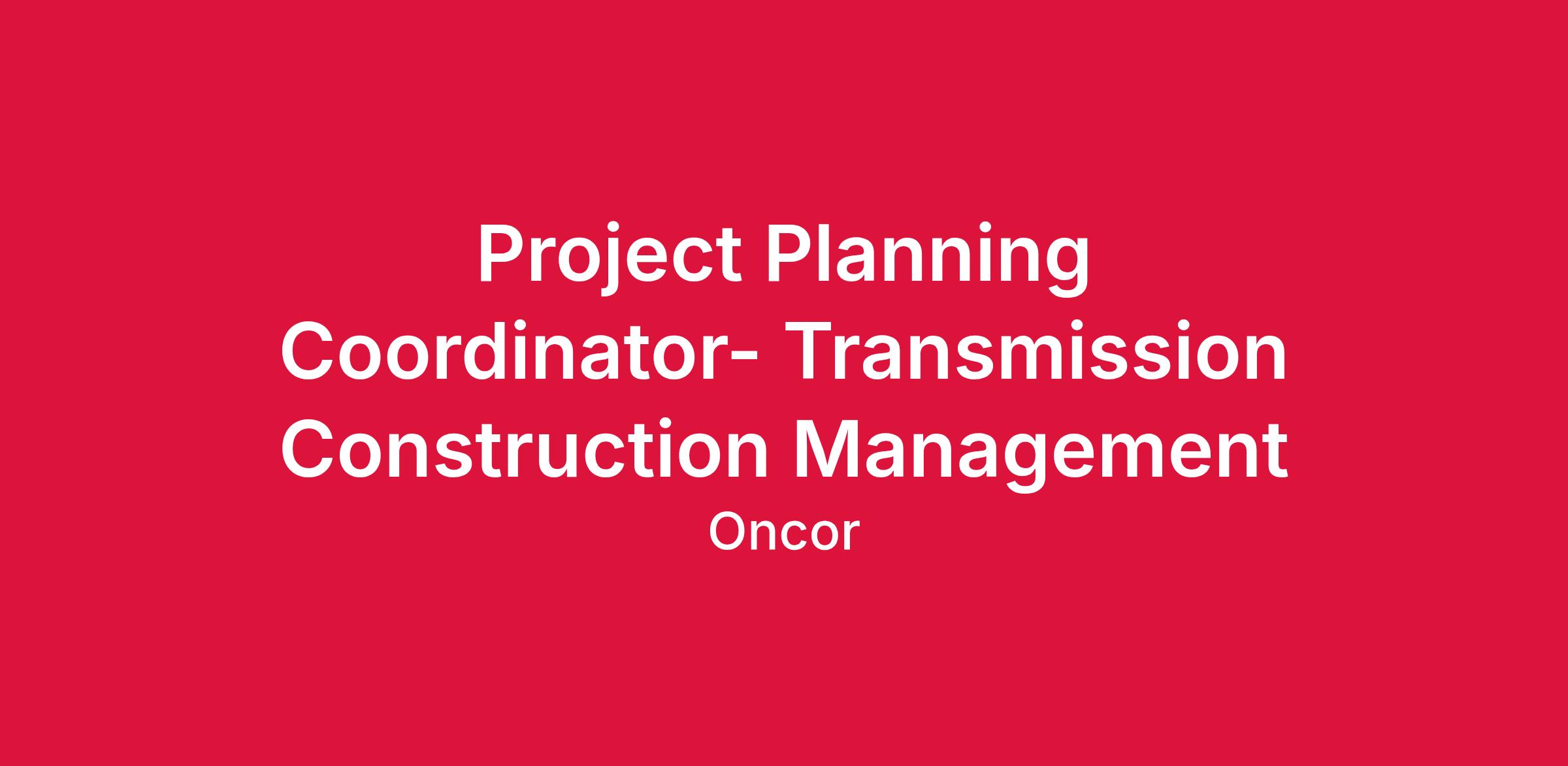 Working under the direct supervision of the Transmission Construction Manager, the Project Planning Coordinator is responsible for developing and maintaining project construction schedules, developing and revising Construction Sequence Documents, coordinating construction efforts in the field among various entities, updating construction status information, and communicating as needed on overall project status with multiple parties. The assigned projects are in various stages of activity and are occurring simultaneously in most instances. The Transmission Construction Coordinator is therefore required to prioritize their work consistent with the goals and schedules of the Transmission Construction Manager and Oncor as a whole.