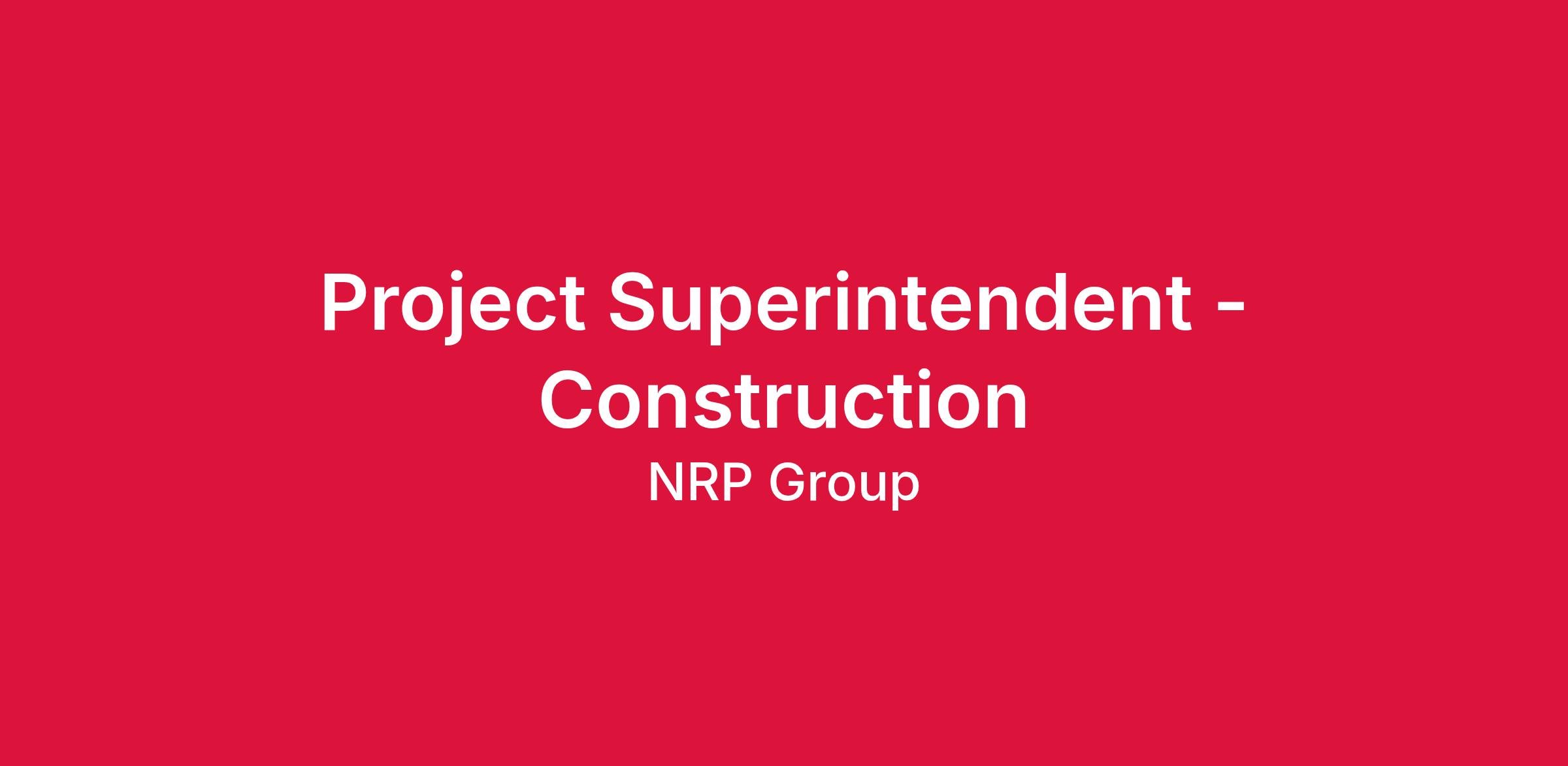 NRP Investments LLC is currently seeking a Project Superintendent.