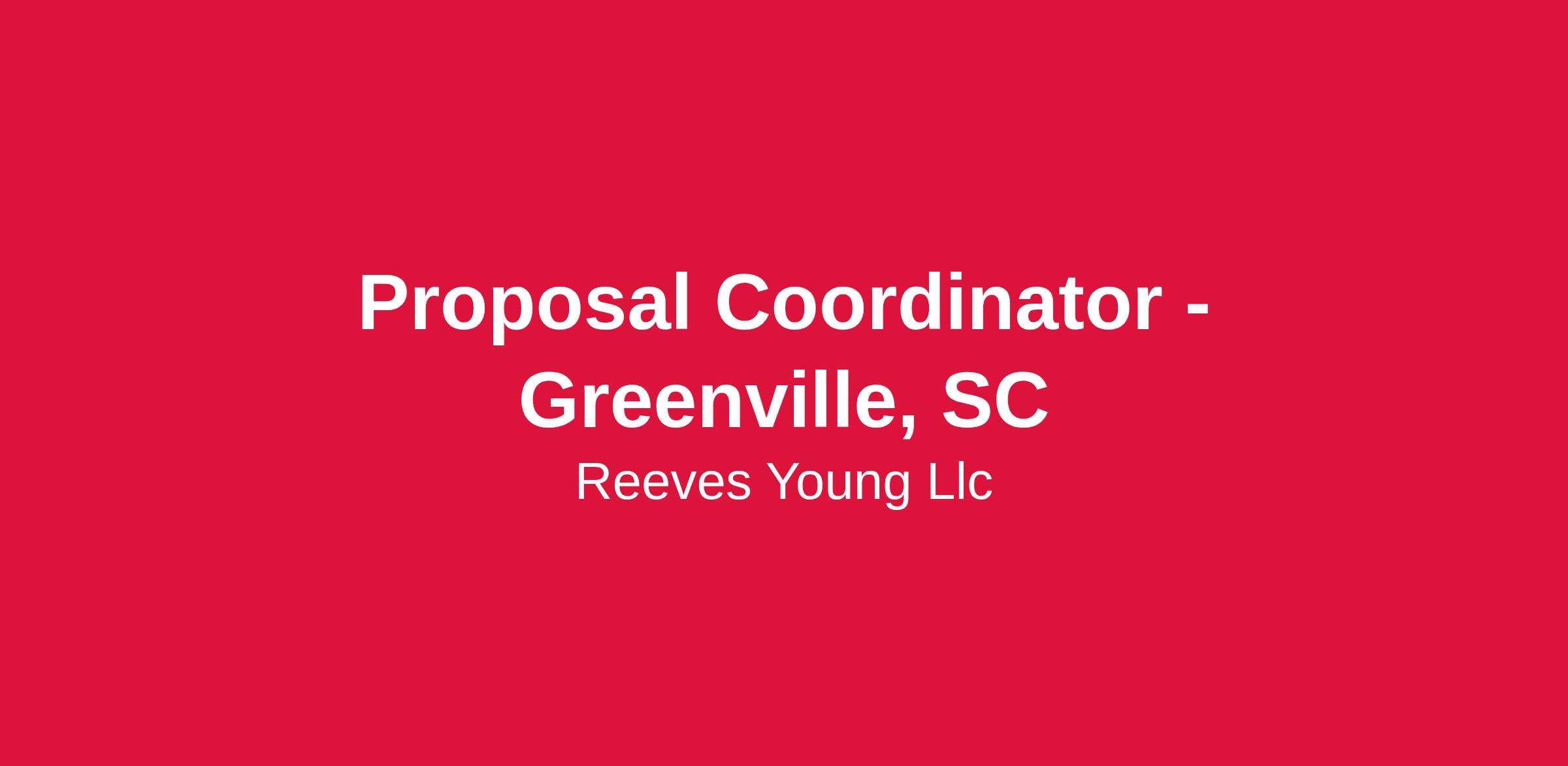 Proposal Coordinator - Greenville, SC