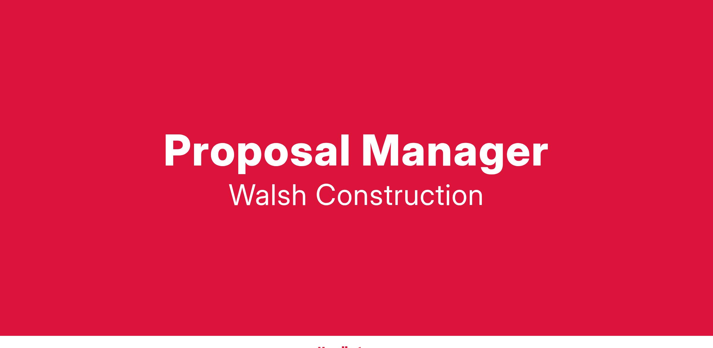 Walsh is currently seeking a Proposal Manager for the Transportation Division in Dallas, TX.