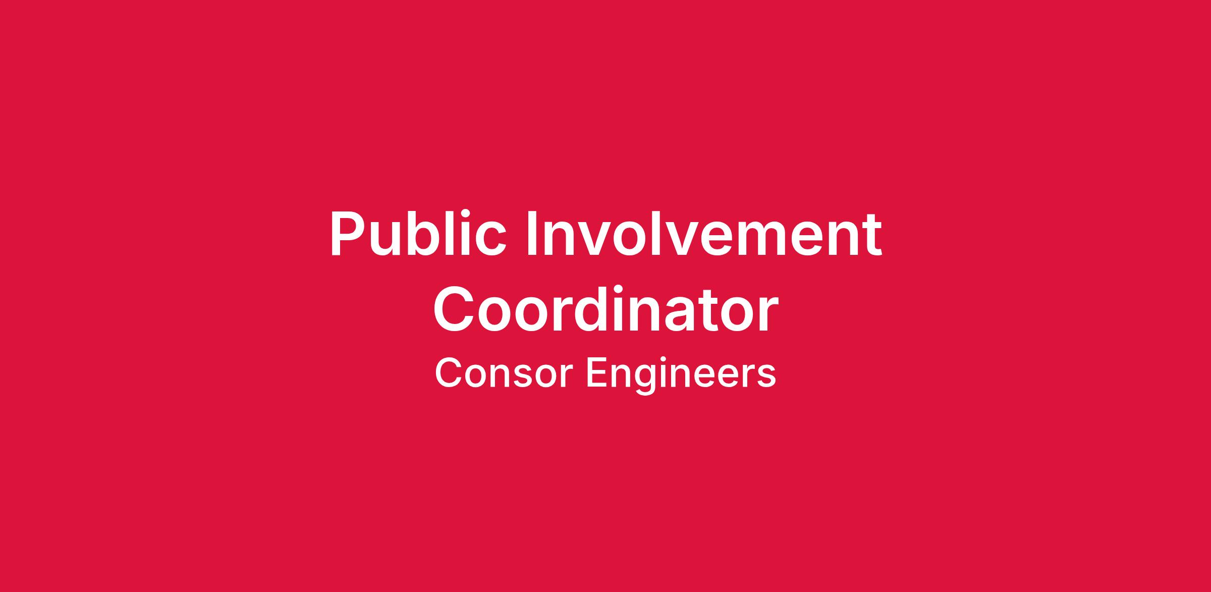 Consor is seeking a Public Involvement (PI) Coordinator to join our Draper, UT office. This position requires a candidate with strong time management, written and verbal communication, planning, organization, active listening, and interpersonal skills. The ideal candidate possesses the ability to take initiative, work independently, and coordinate efforts with multi-discipline teams. The candidate must demonstrate excellent attention to detail and have the ability to produce high quality work under short time constraints. Proficiency in Adobe InDesign and Illustrator is helpful.