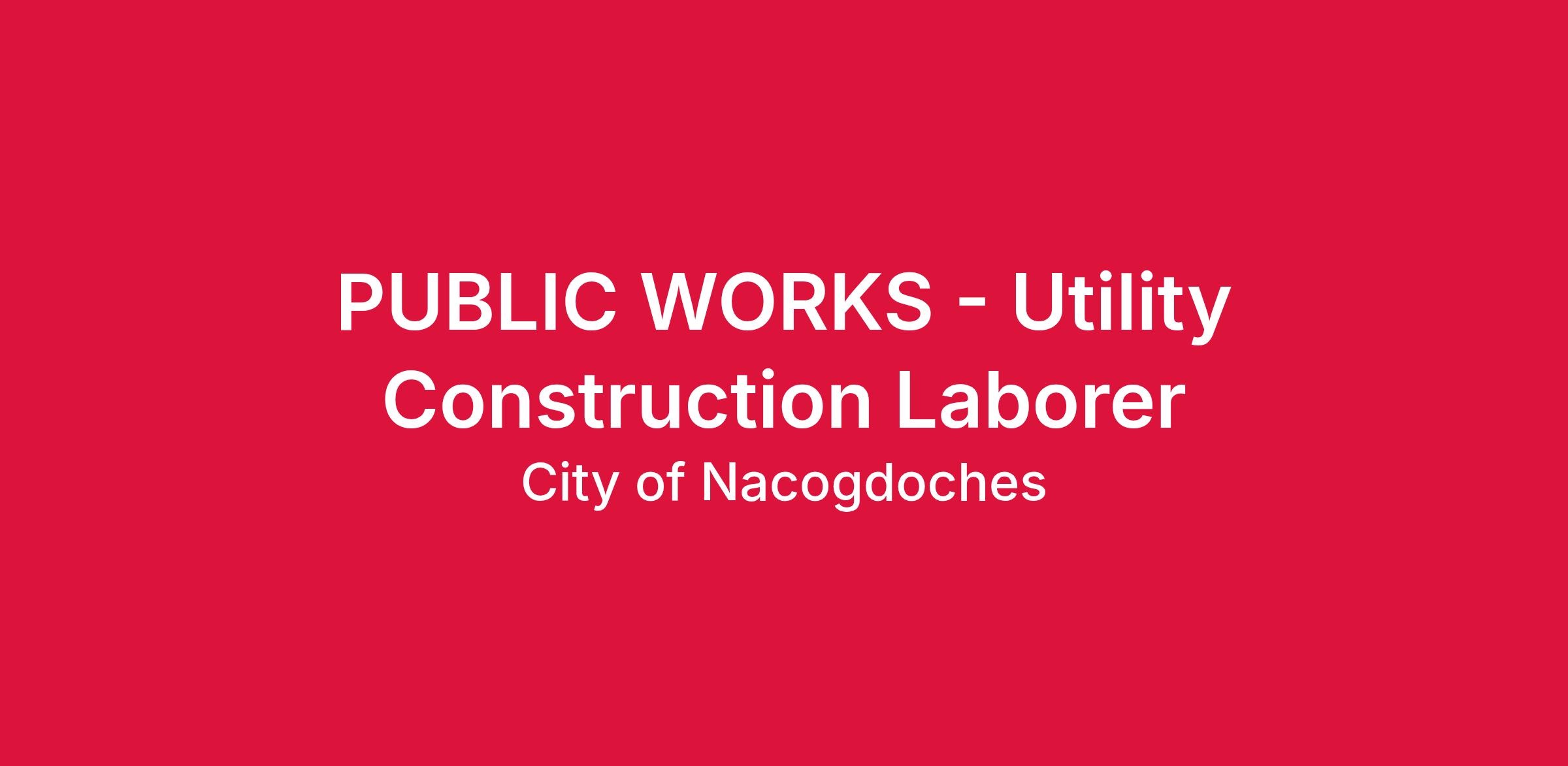 Are you a hands-on individual with experience in utility construction? The City of Nacogdoches Public Works Department is seeking a dedicated and physically capable Laborer to join our Utility Construction Division.