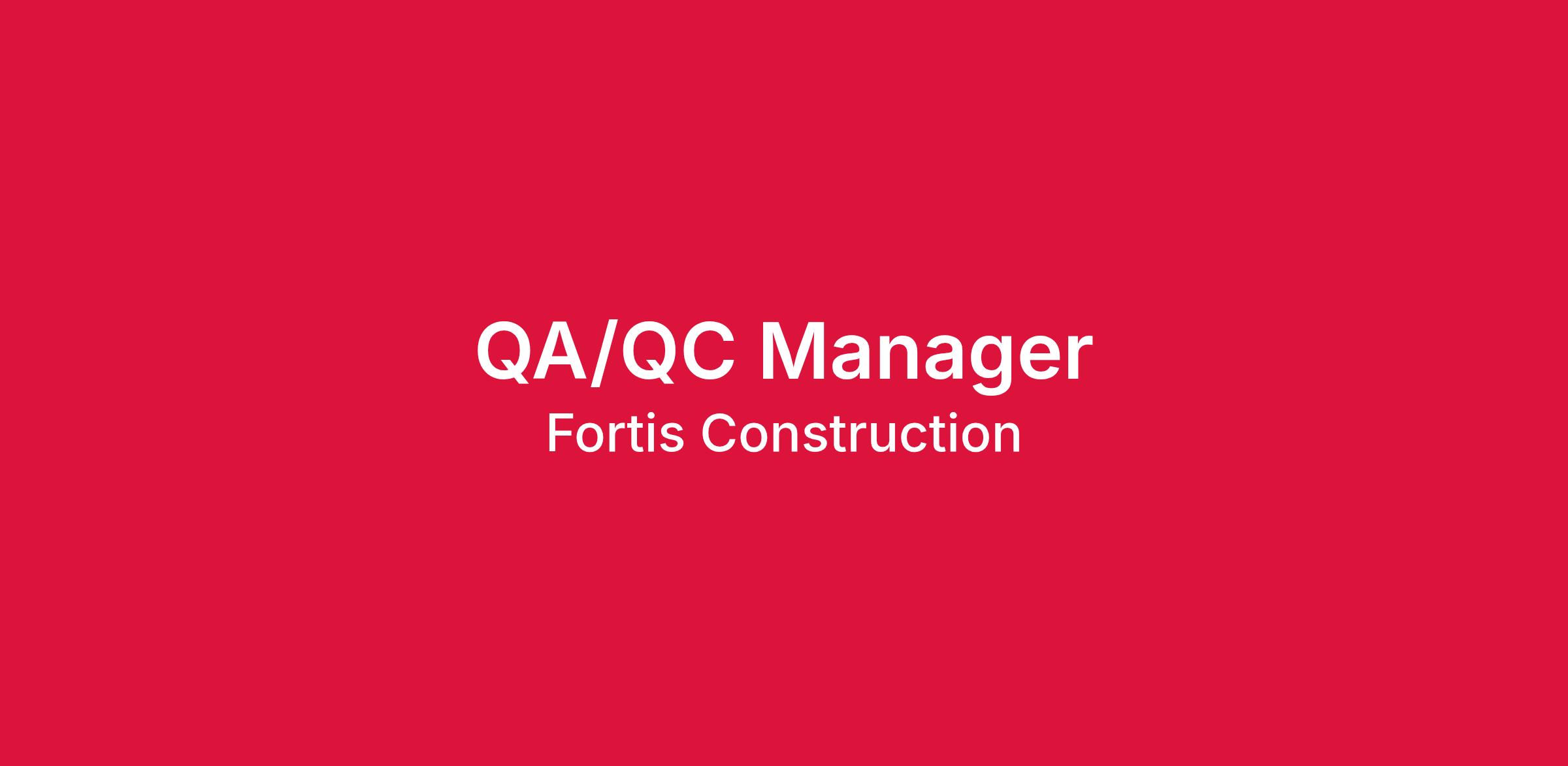 RQ-0593 QA/QC Manager (Open)Fortis is an Equal Employment Opportunity employer. We adhere to a policy of making employment decisions without regards to race, color, religion, sex, age, disability or any other protected categories. It is our intention that all qualified applicants be given an equal opportunity and that selection decisions be based on job-related factors.