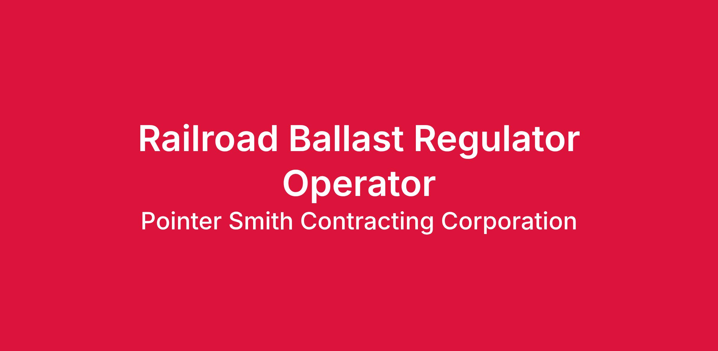 Railroad Regulator Operator for railroad construction and maintenance. 1 - 2 years of operating experience is required.
