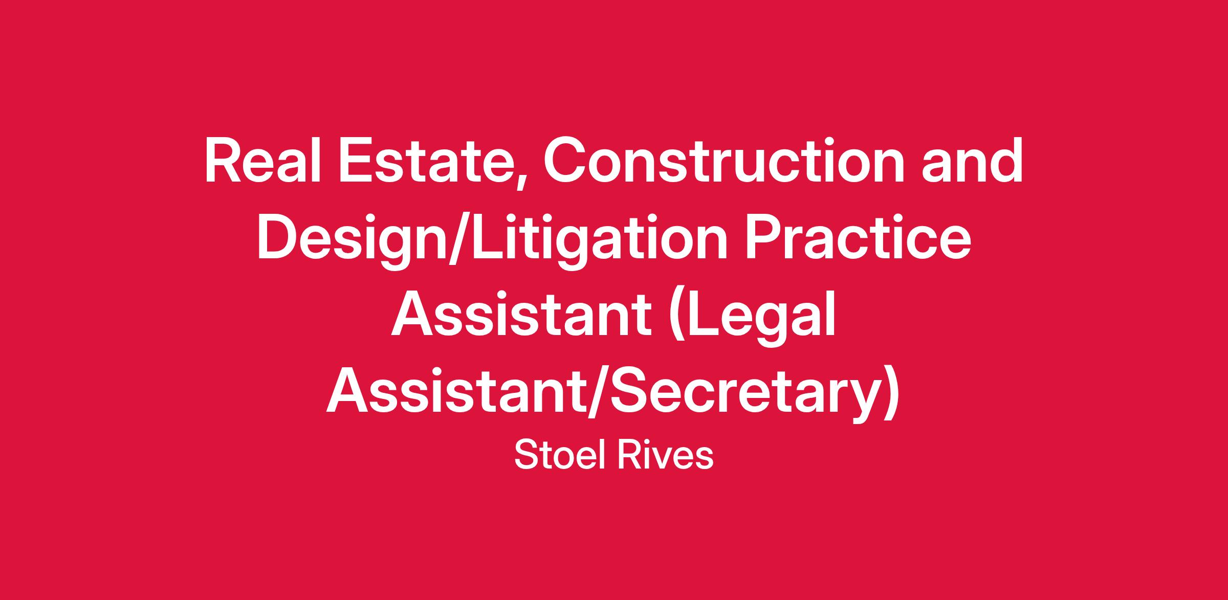 Stoel Rives LLP has an immediate opening for a Real Estate, Construction and Design/Litigation Practice Assistant in our Boise office. This position provides legal administrative support to attorneys in the Real Estate, Construction and Design, and Litigation practice groups. This position reports to the Office Coordinator.