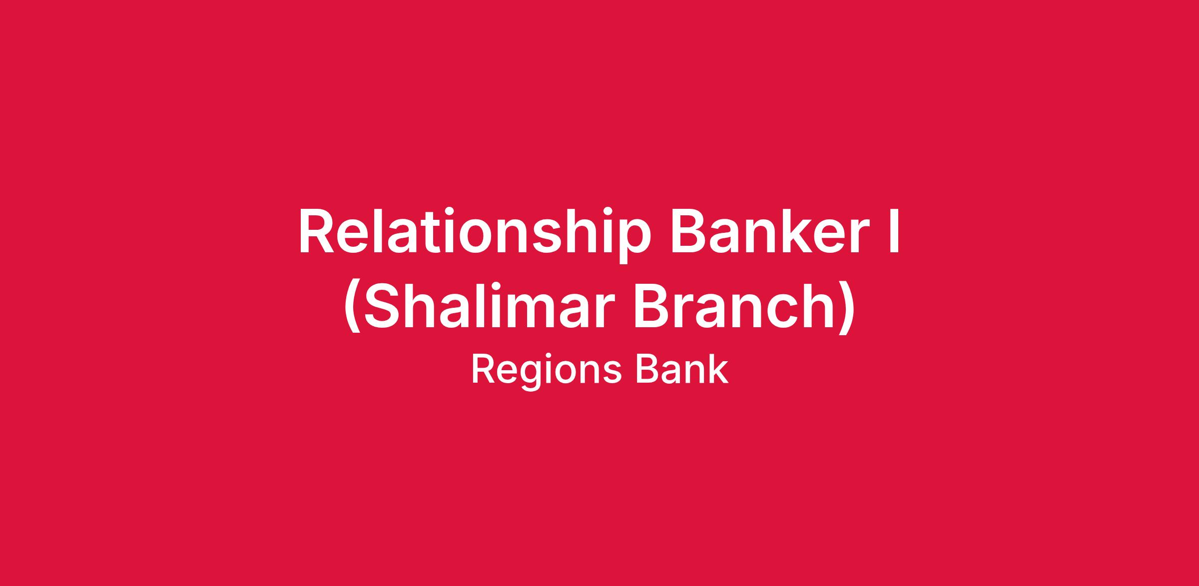 Relationship Banker I (Shalimar Branch)