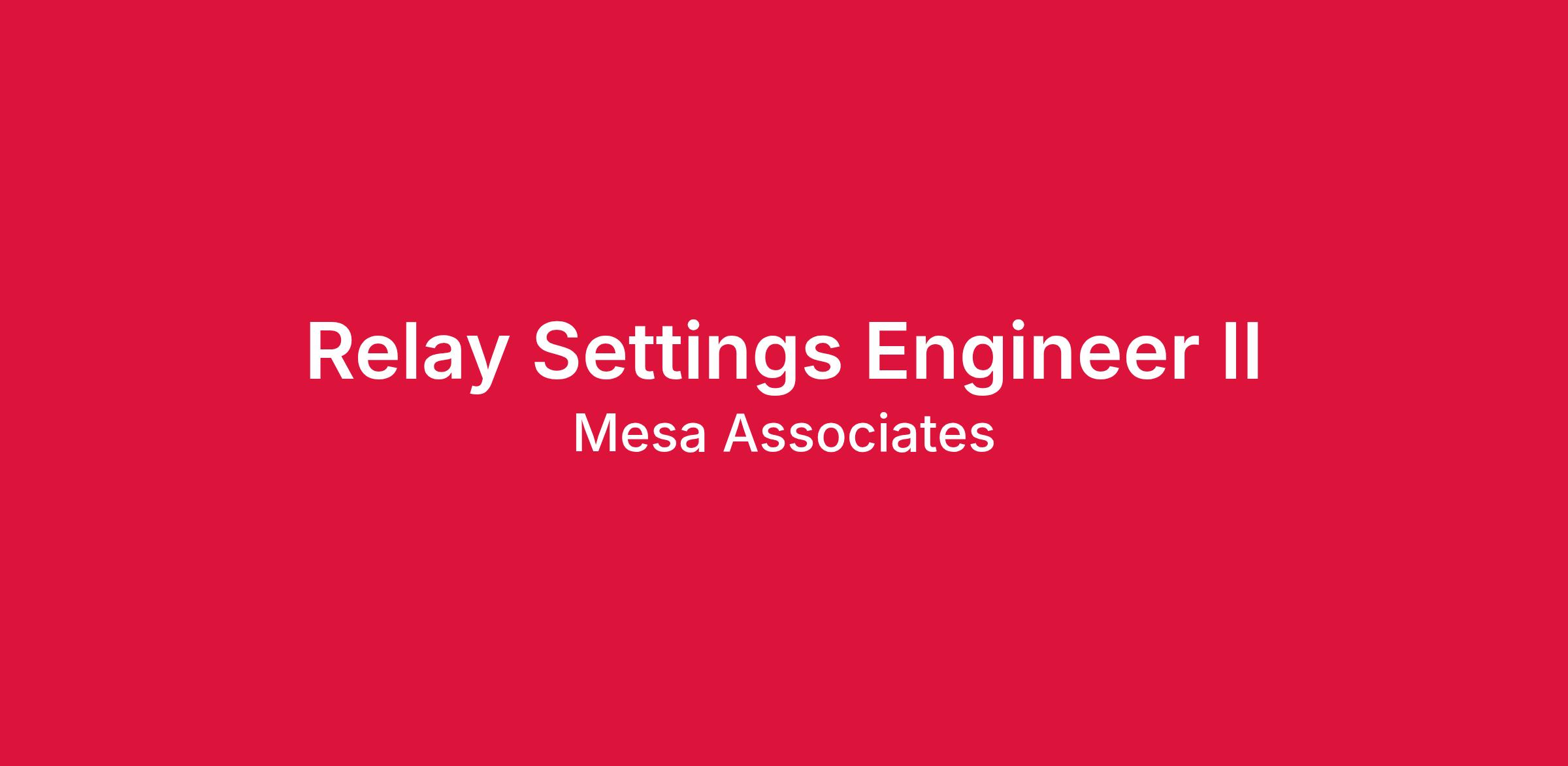 Mesa seeks an experienced Relay Settings Engineer that is looking to further their career in the electric power industry. This position is for our Power Delivery Substation group which supports various clients across the United States.