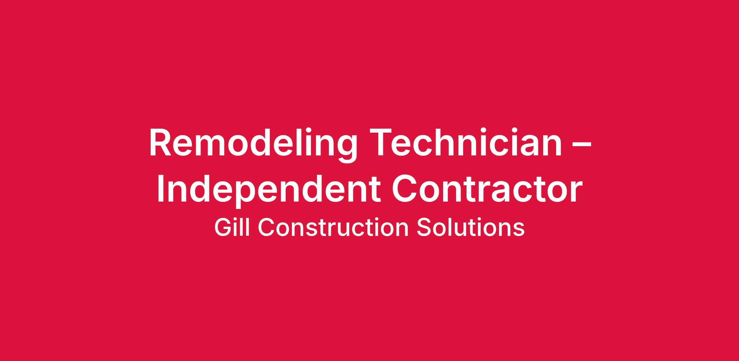 We are seeking an experienced Remodeling Technician to partner with us as an independent contractor to support ongoing and upcoming residential remodeling projects.