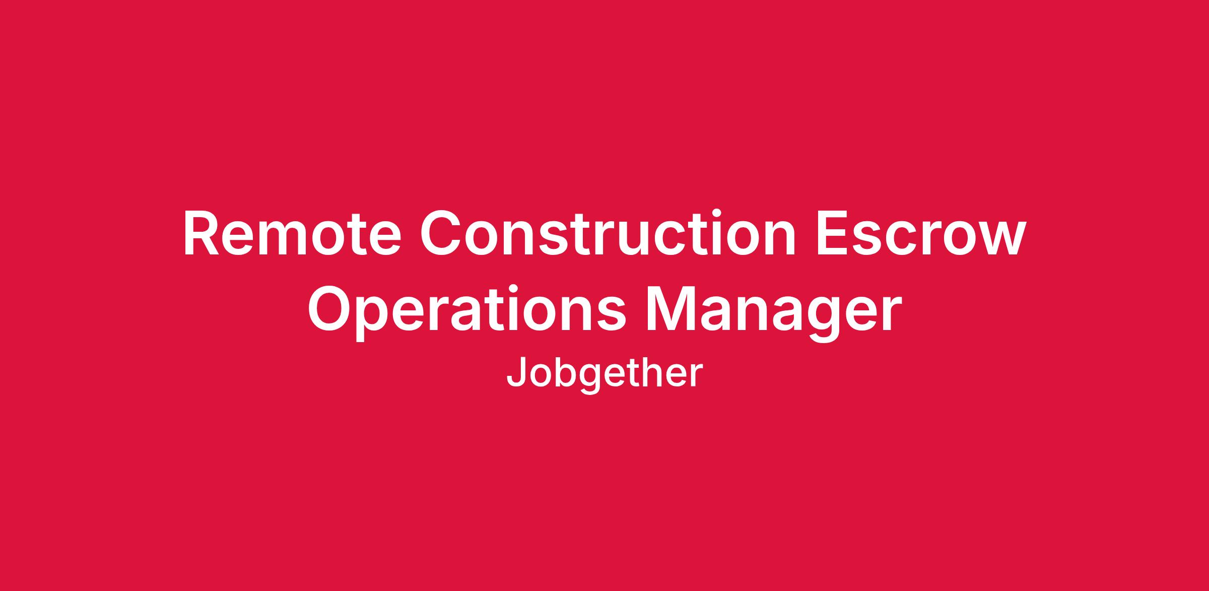 This position is posted by Jobgether on behalf of a partner company. We are currently looking for a Remote Construction Escrow Operations Manager. In this role, you will be responsible for establishing and managing processes and procedures related to escrow operations. You will lead teams that perform a variety of duties to ensure compliance and policy adherence while meeting production goals and timelines. Your impact will be felt across regions, effectively acting as a liaison between various groups to resolve issues and coordinate operations, thereby playing a critical role in the success of our partner's operations.