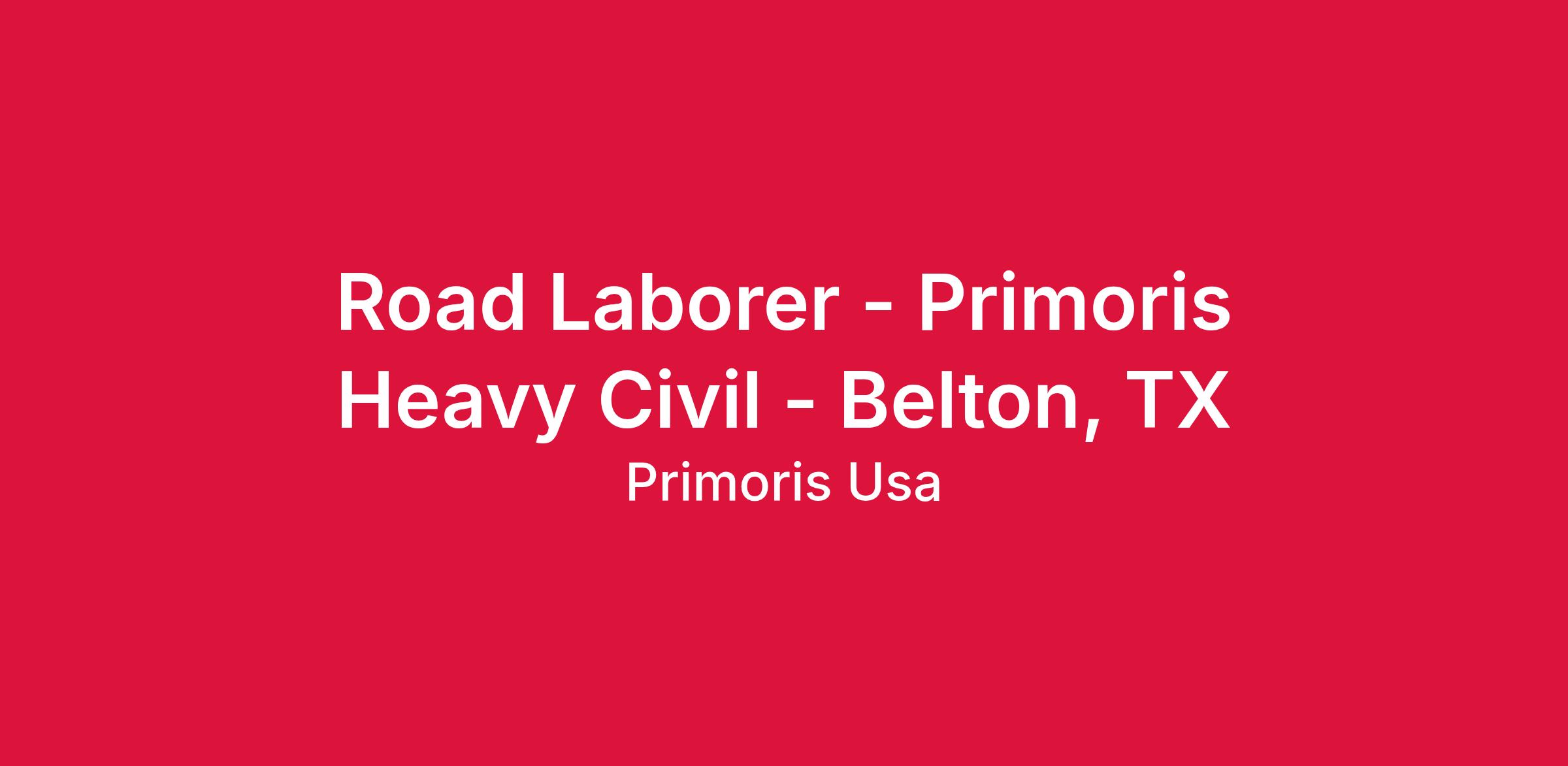 Join a winning team! Primoris Heavy Civil is Hiring Skilled Road Laborers in Belton, TX