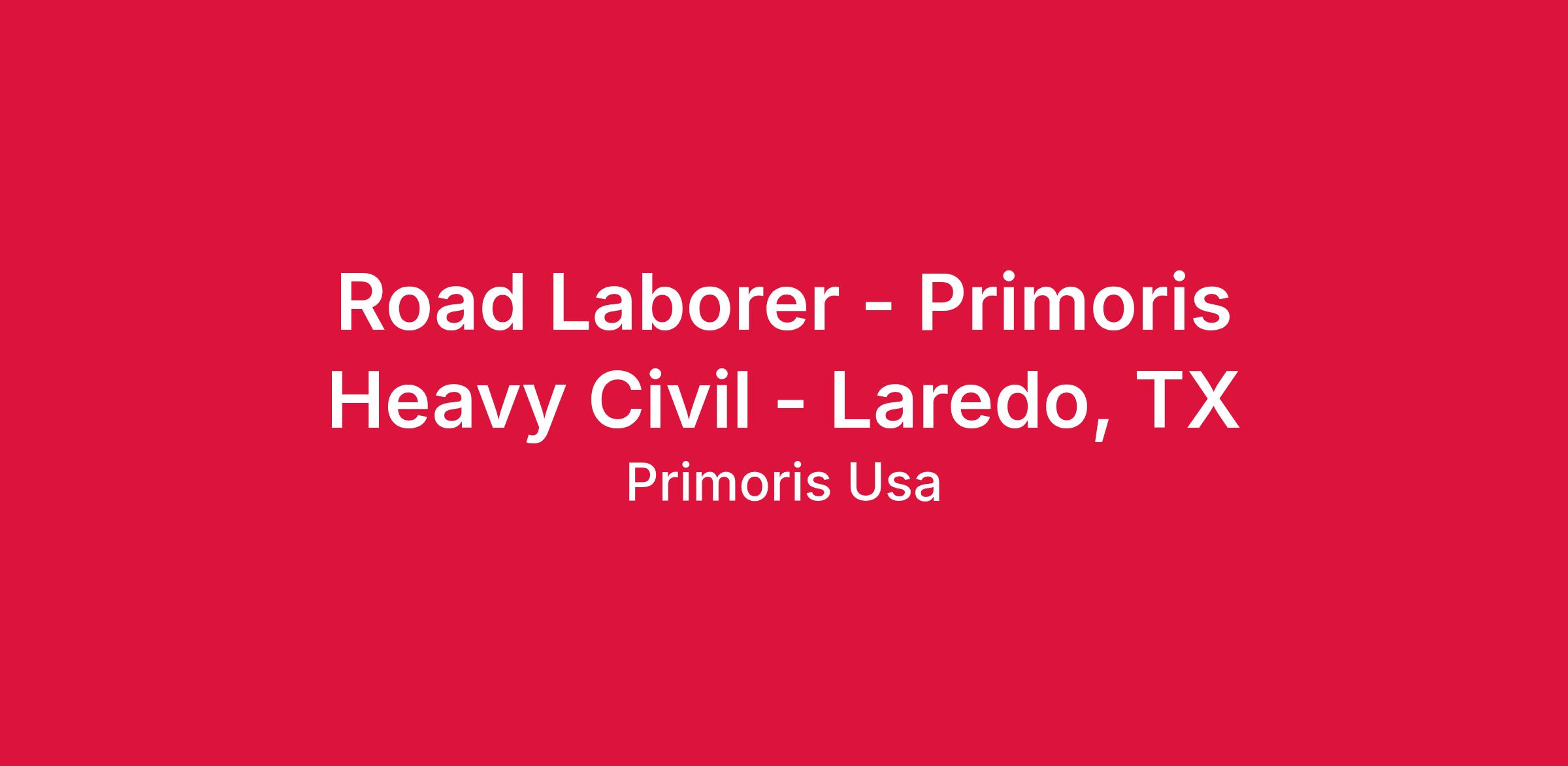 Join a winning team! Primoris Heavy Civil is Hiring Skilled Road Laborers in Laredo, TX