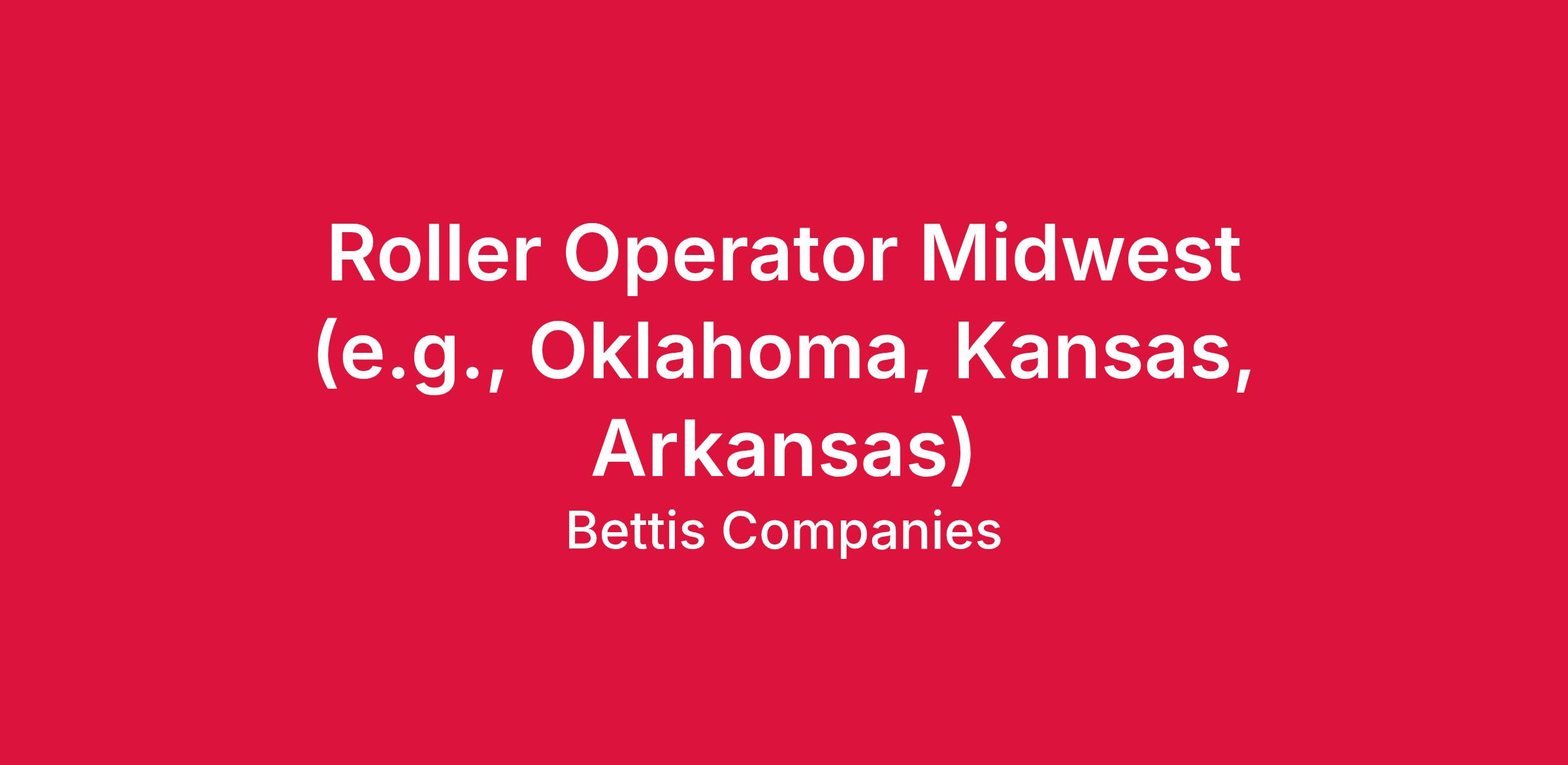 The Roller Operator position will require extended travel and work throughout the Midwest (e.g. Oklahoma, Kansas, Arkansas).