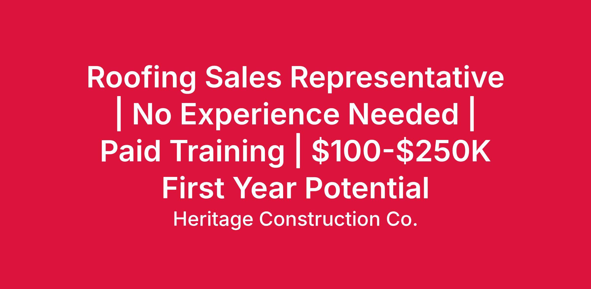 Join Heritage Roofing & Construction as a Roofing Sales Representative – High Income & Growth Potential!
