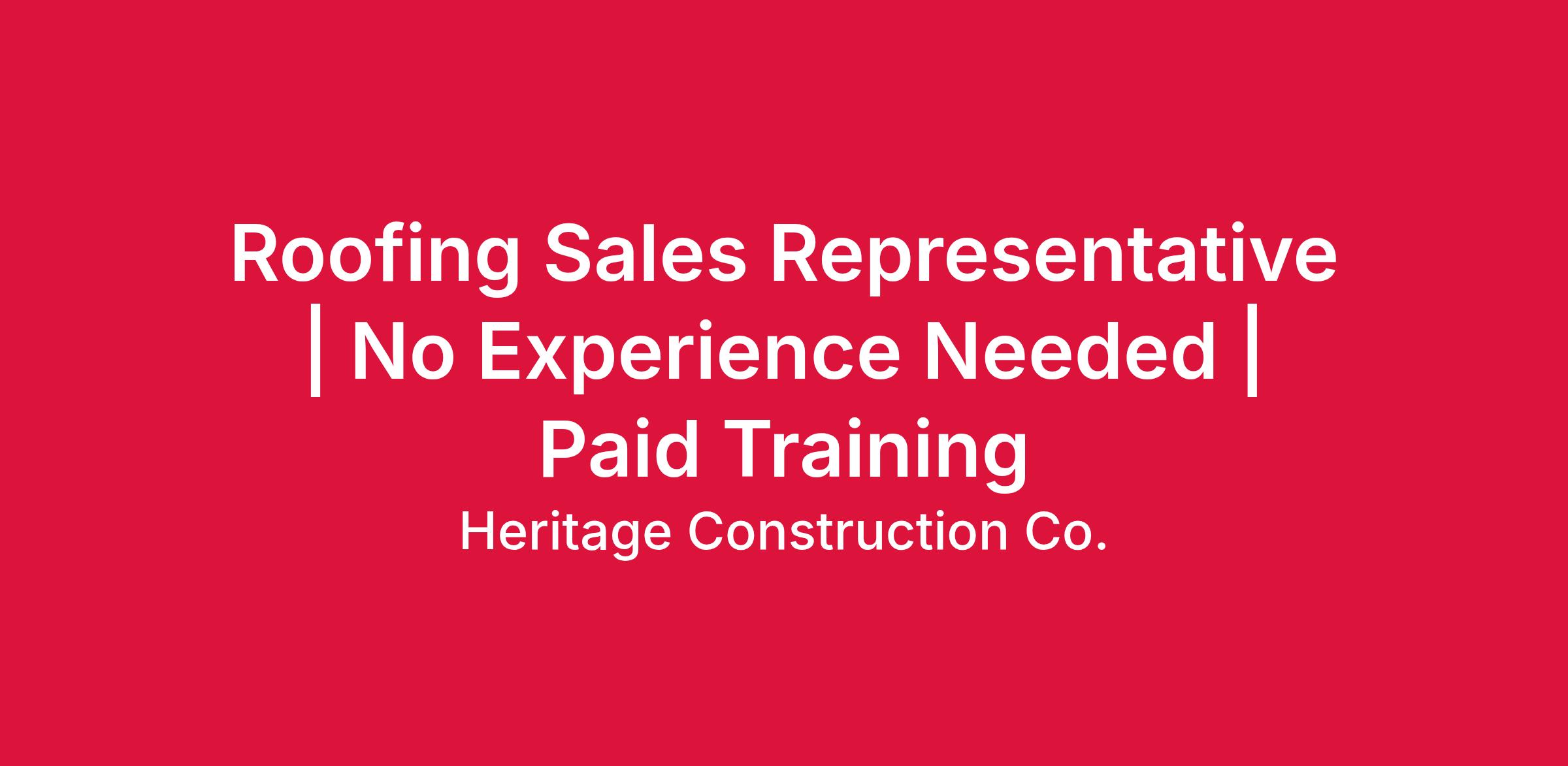 Join Heritage Roofing & Construction as an Entry Level Sales Representative – High Income & Growth Potential! | $100-$250K First Year Potential