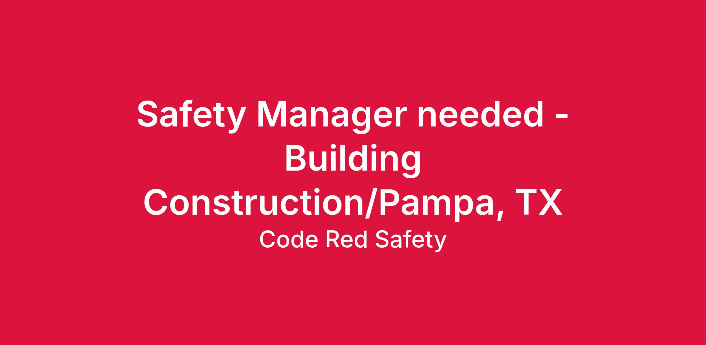 Code Red Safety is looking for a Safety Manager for a construction project in Pampa, TX.  Work will begin in earnest late April and run for approximately 14 months.  The standard work schedule is 50-60 hours per week.  Local candidates will have first consideration.