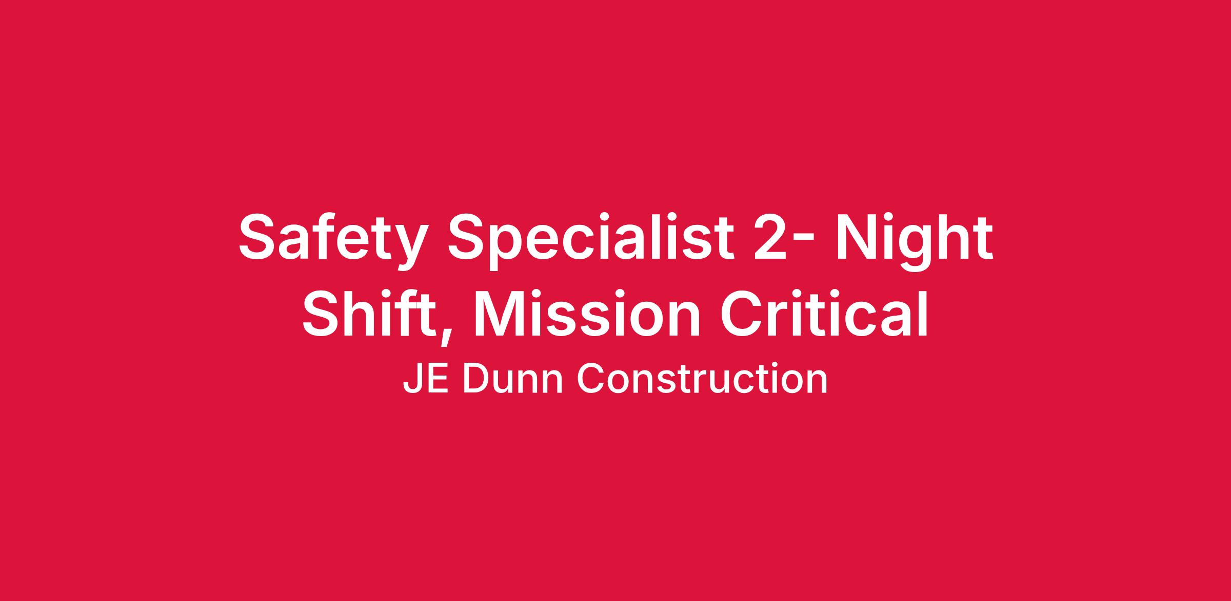 The Safety Specialist 2 will coordinate and implement the field safety program for routine and increasingly complex construction projects. This position will be responsible for conducting safety inspections, identifying and documenting abatement of hazardous conditions, writing reports and performing trend analysis. All activities will be performed in support of the strategy, vision and values of JE Dunn.