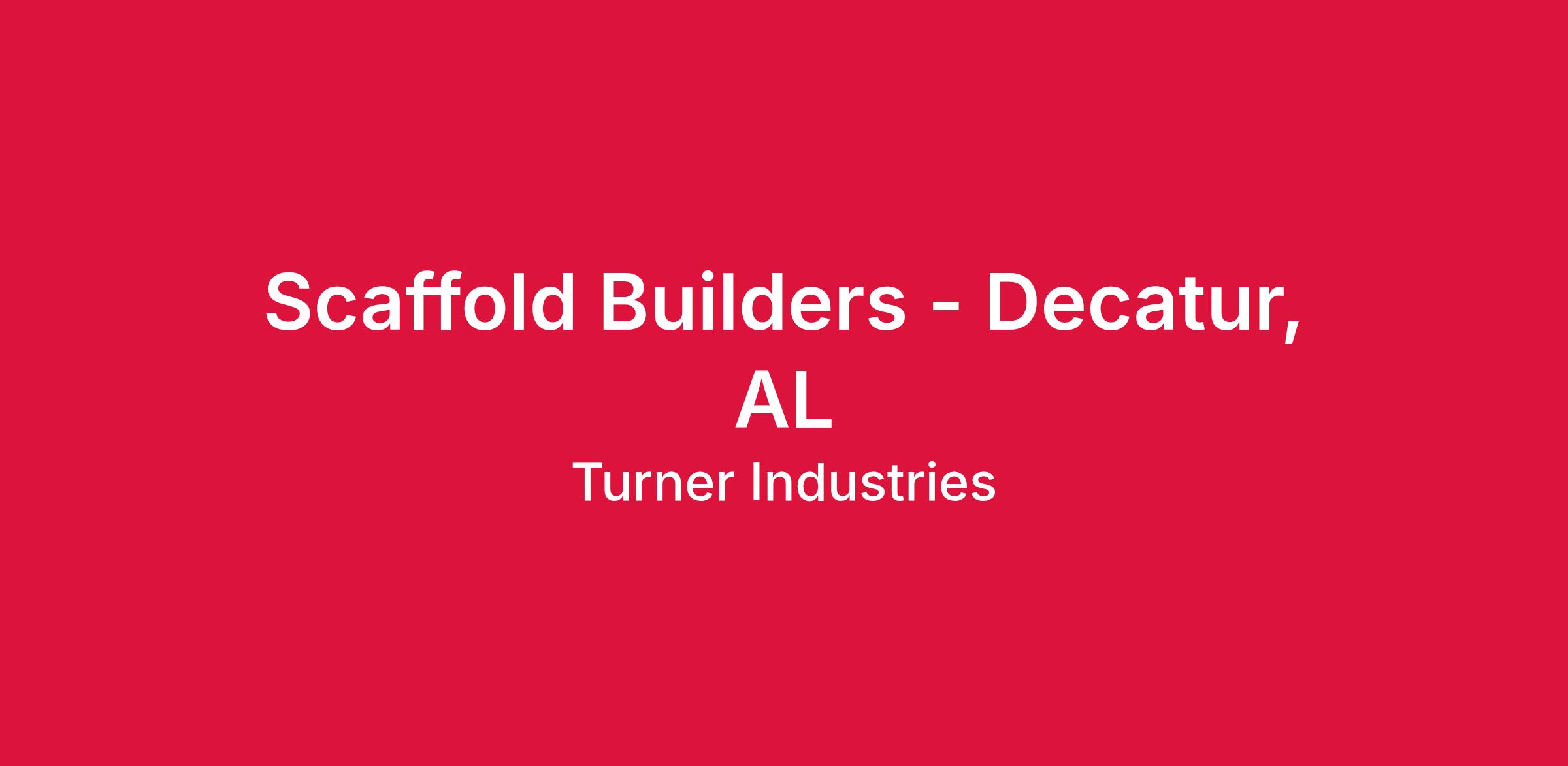 Turner Industries Group, LLC has an opening for a Scaffold Builder to join our Team in the Decatur, AL area. The Scaffold Builder will be responsible for assembling, positioning, modifying, and dismantling scaffolding to job specifications.
