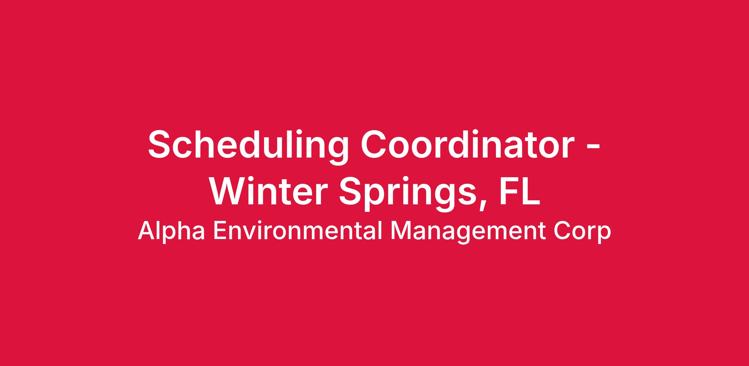 Scheduling Coordinator - Winter Springs, FL