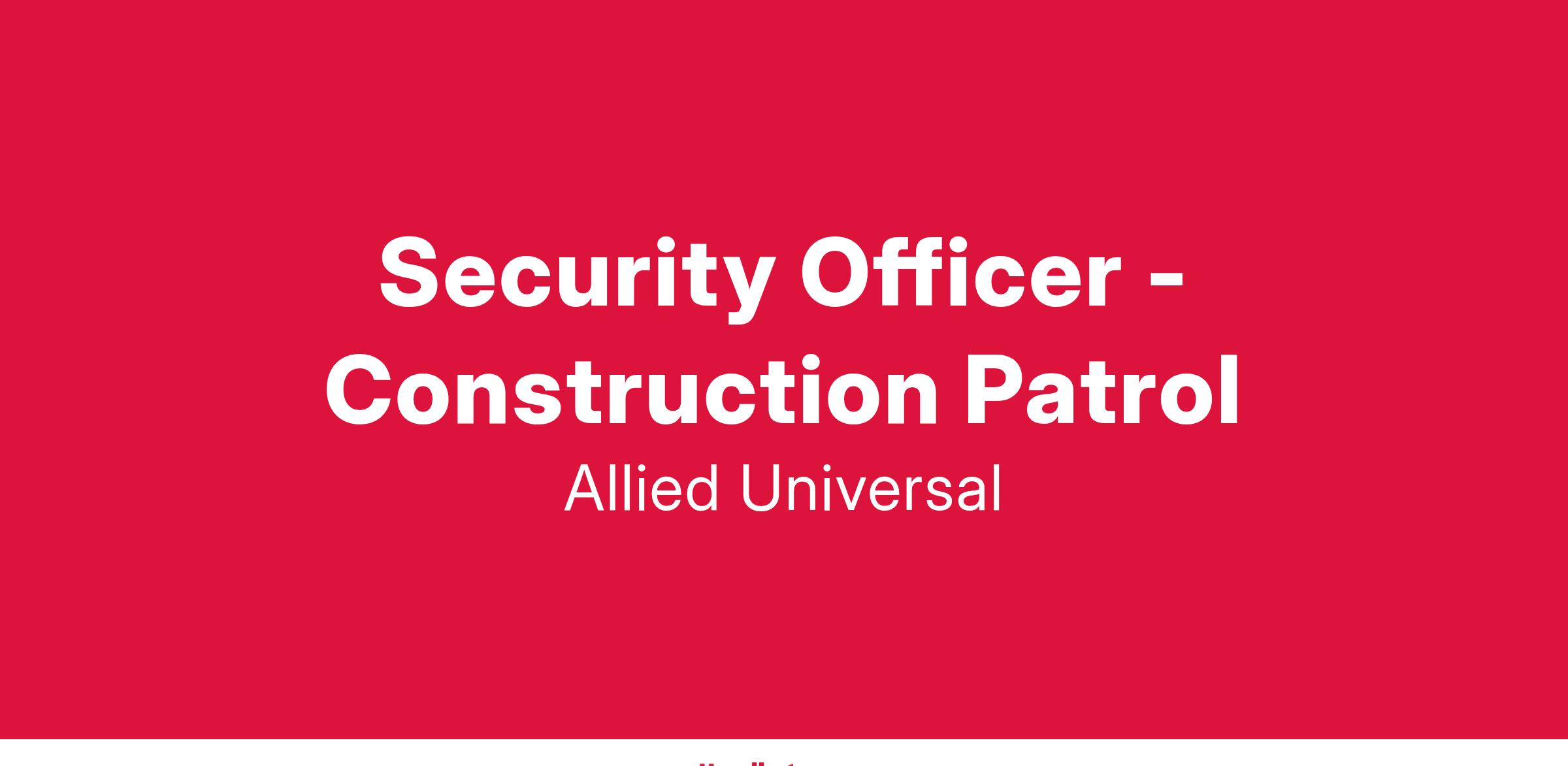 Allied Universal Security is seeking Unarmed Security Professionals to join our Construction Patrol team.