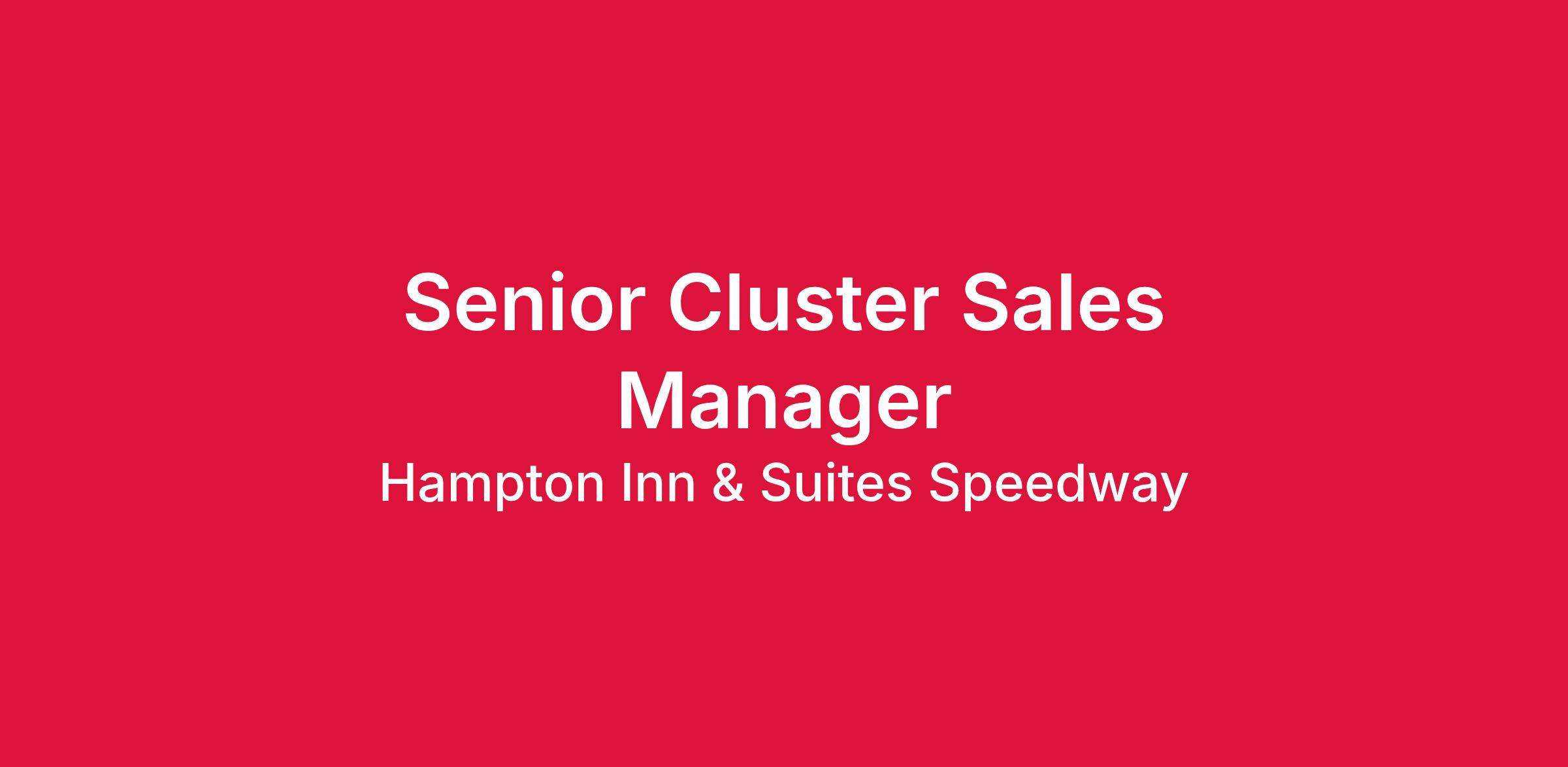 The Senior Cluster Sales Manager is responsible for leading and developing a proactive sales effort with group business, leisure market, social, military, educational, religious, fraternal and sports market segments, oversight of advertising, promotional initiatives and contributing to overall revenue generating efforts of the hotel to maximize hotel profitability and maintain customer satisfaction. This includes driving sales, exceeding 100% RGI and achieving budgeted total hotel revenue expectations.