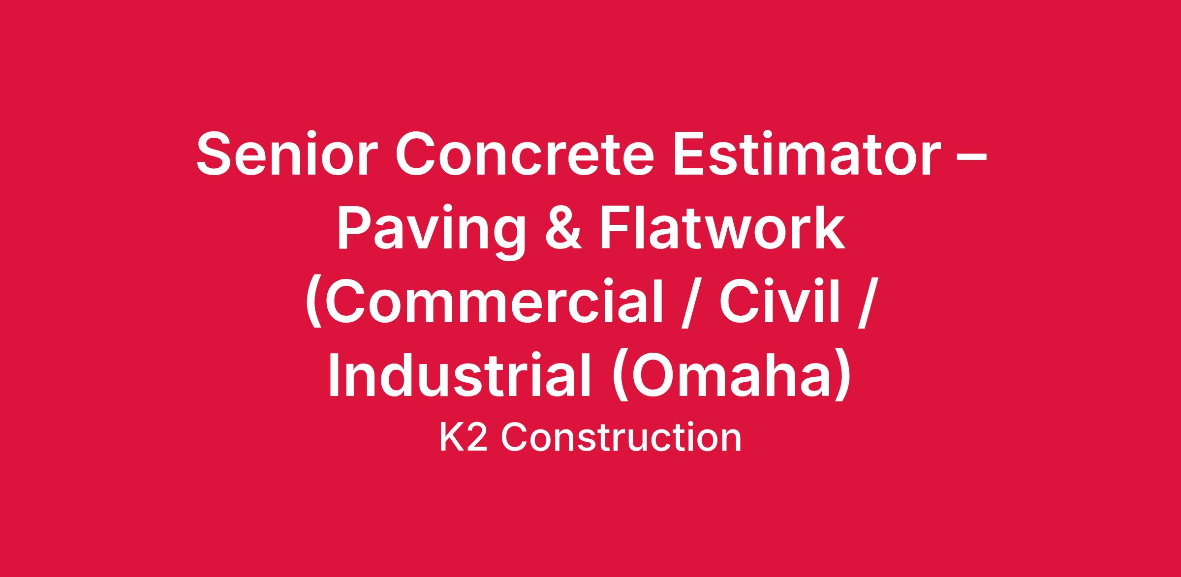 We are seeking an experienced Concrete Estimator with a strong background in paving and flatwork across commercial, civil, and industrial markets.