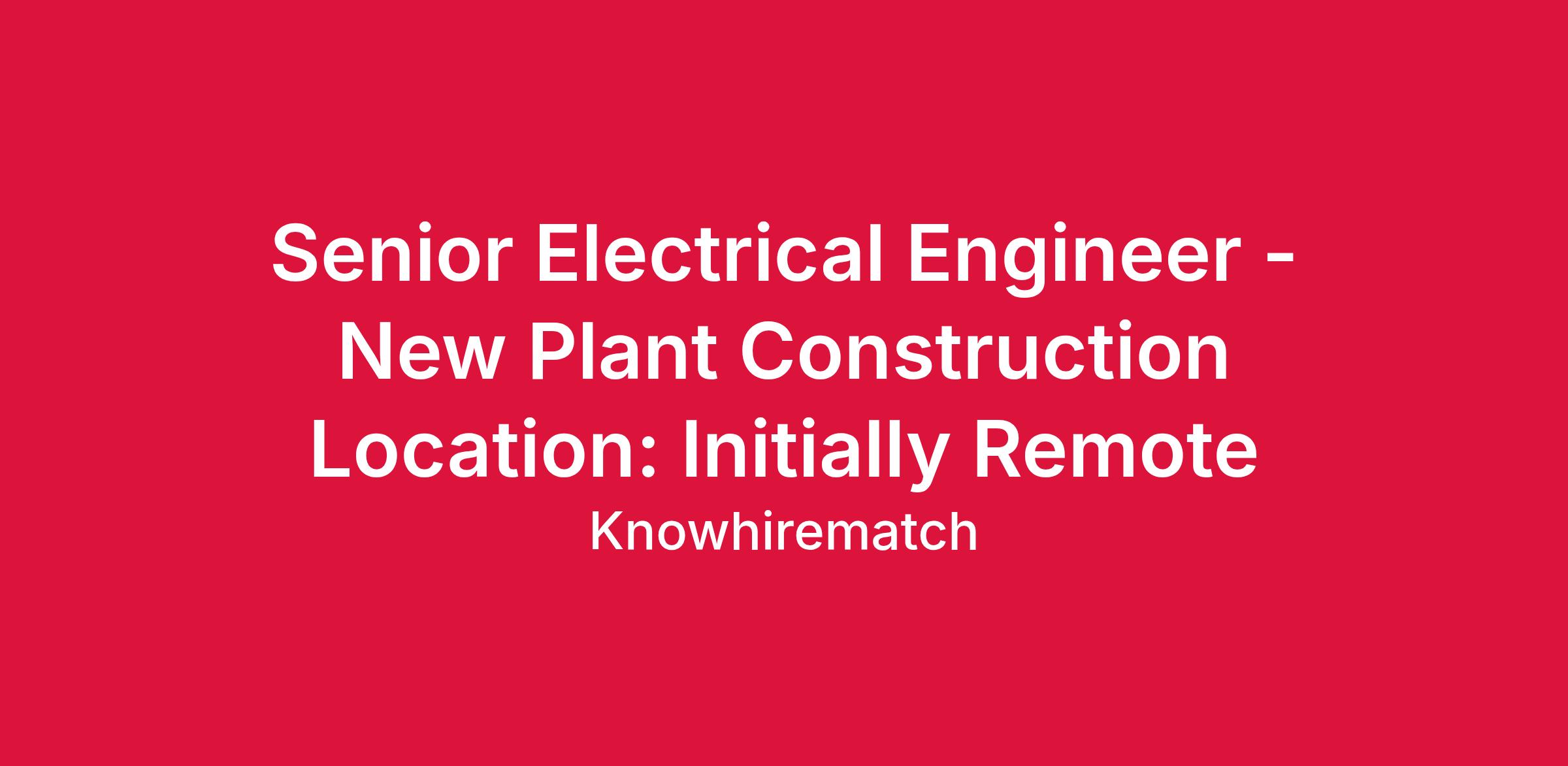 Senior Electrical Engineer – New Plant Construction Location: Initially Remote